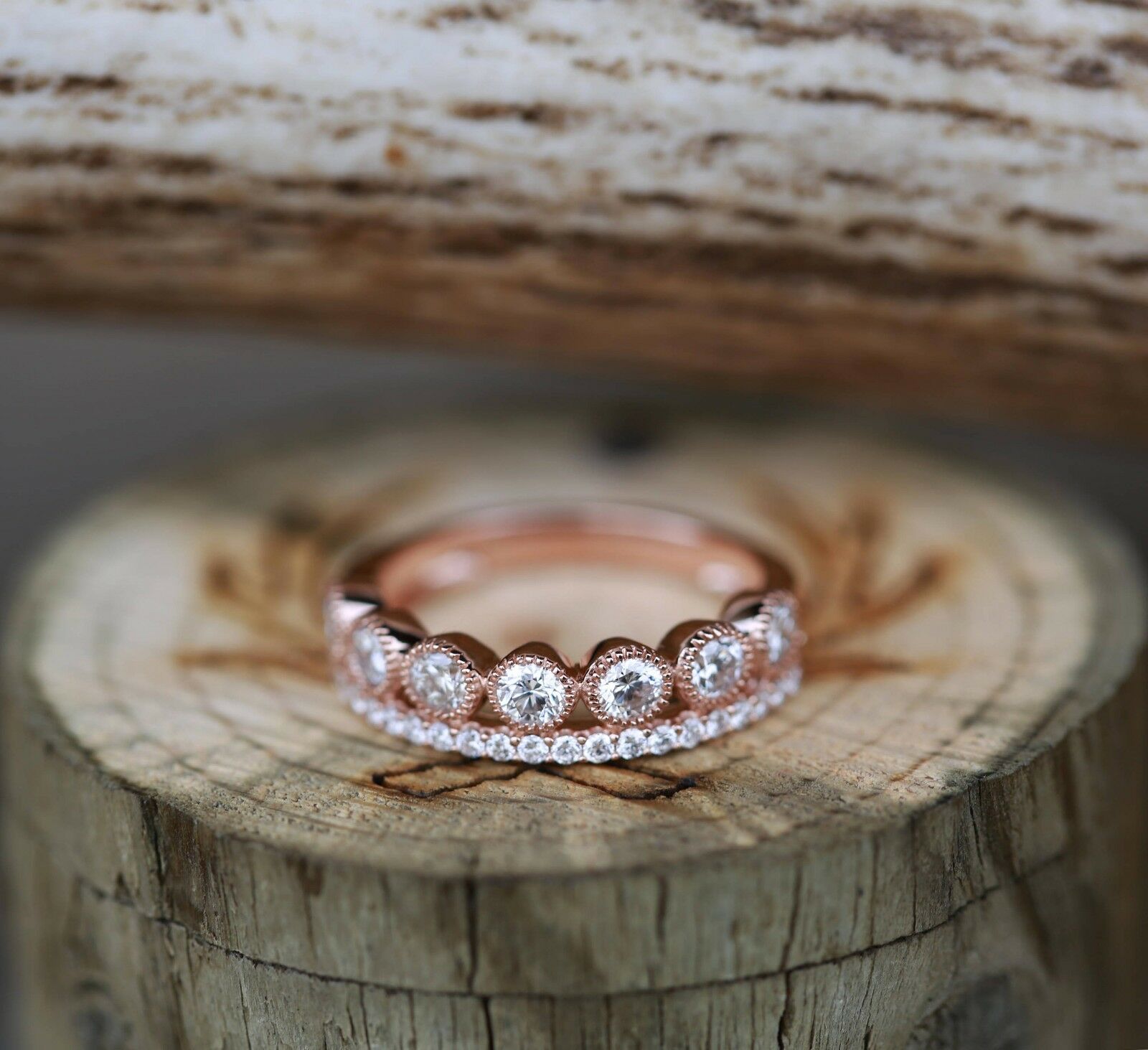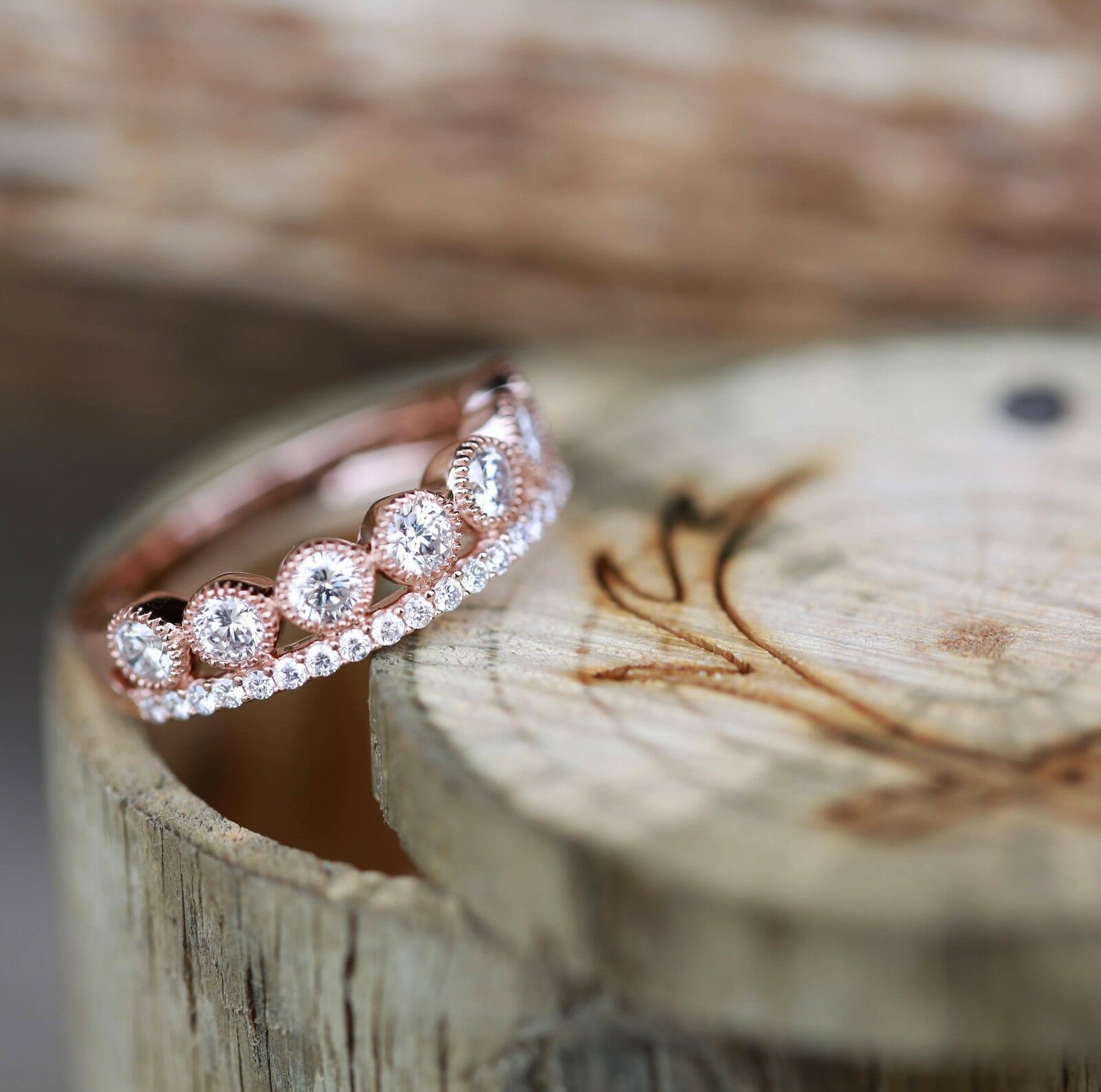 2ct Round Cut Diamond Engagement Ring 14k RoseGold Over Half Eternity Bridal Set