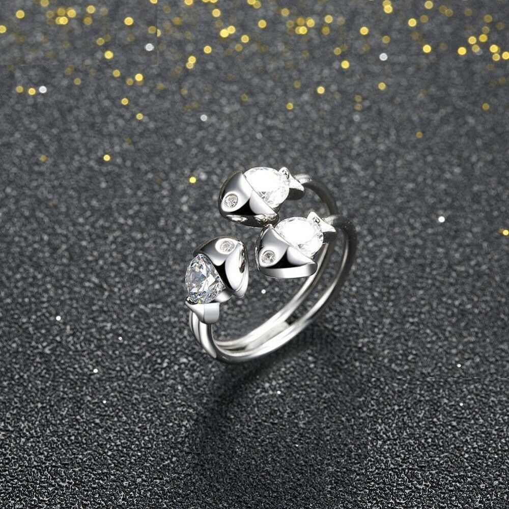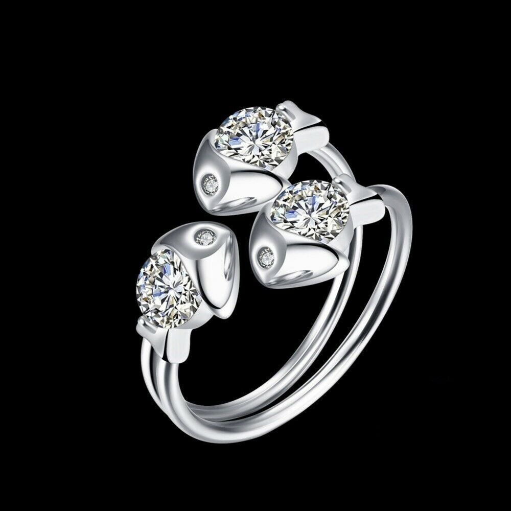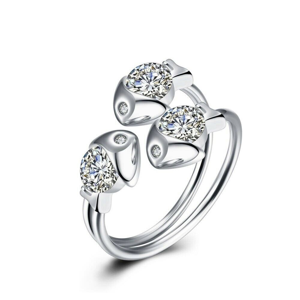 2ct Round Cut Diamond Engagement Ring 14k White Gold Finish 3 Fishes Solitaire