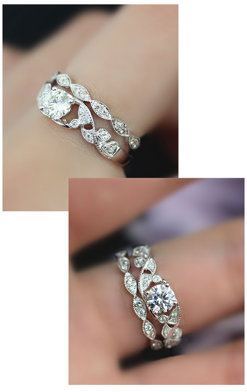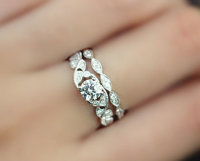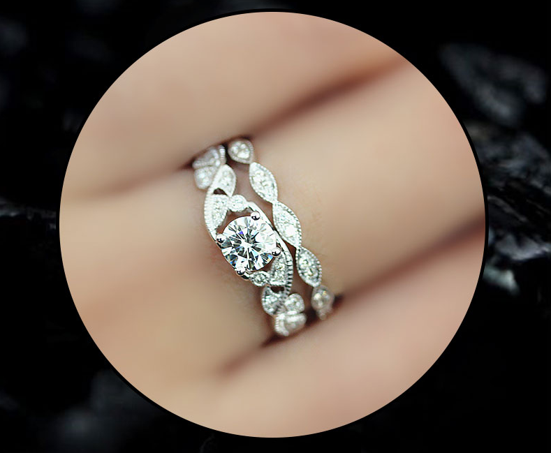 2ct Round Cut Diamond Engagement Ring 14k White Gold Finish Milgrain Bridal Set