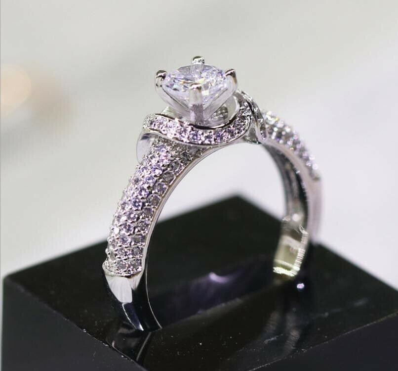 2ct Round Cut Diamond Engagement Ring 14k White Gold Finish Solitaire for Women