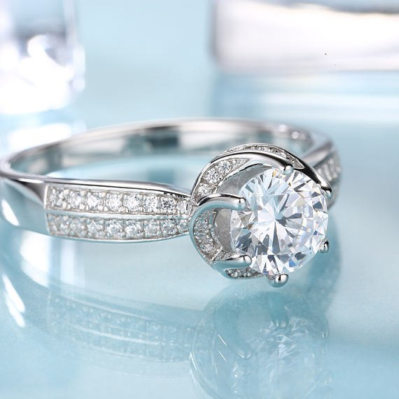 2ct Round Cut Diamond Engagement Ring 14k White Gold Finish Unique Promise Women