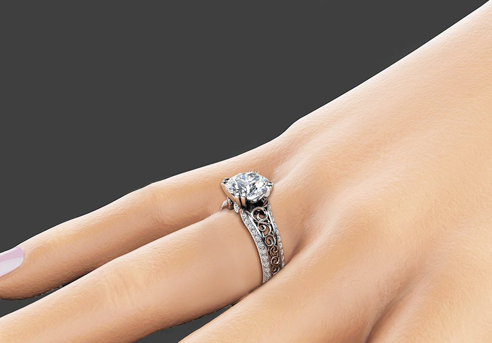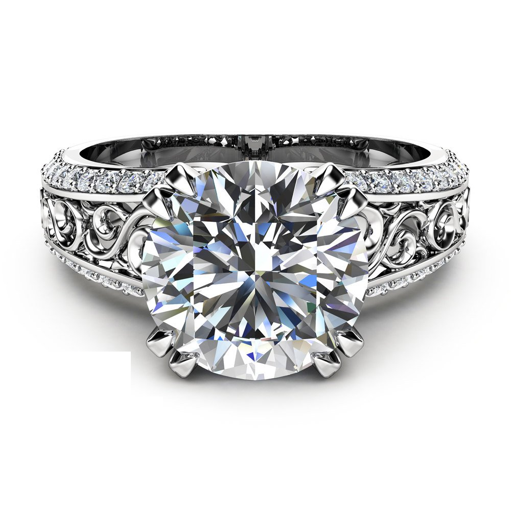2ct Round Cut Diamond Engagement Ring 14k White Gold Over Filigree Vintage Style