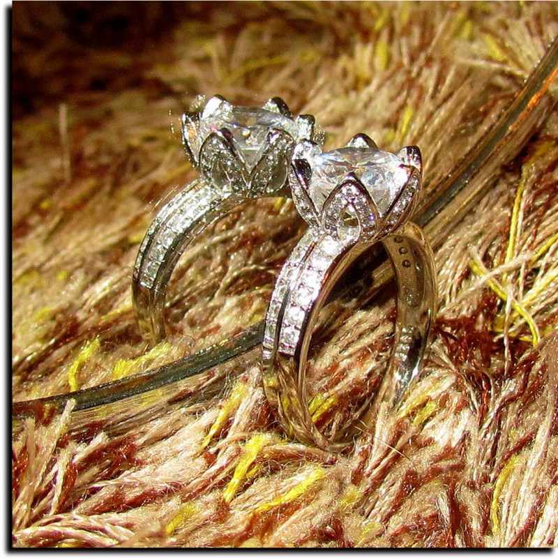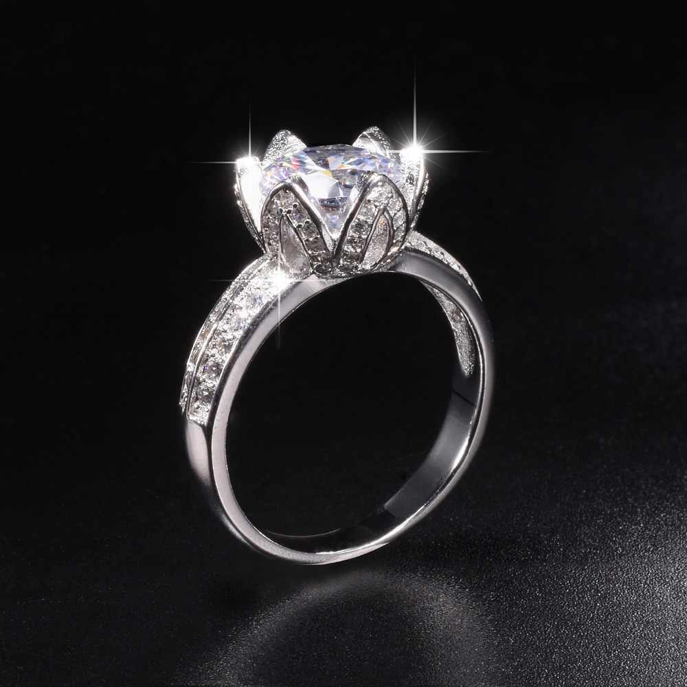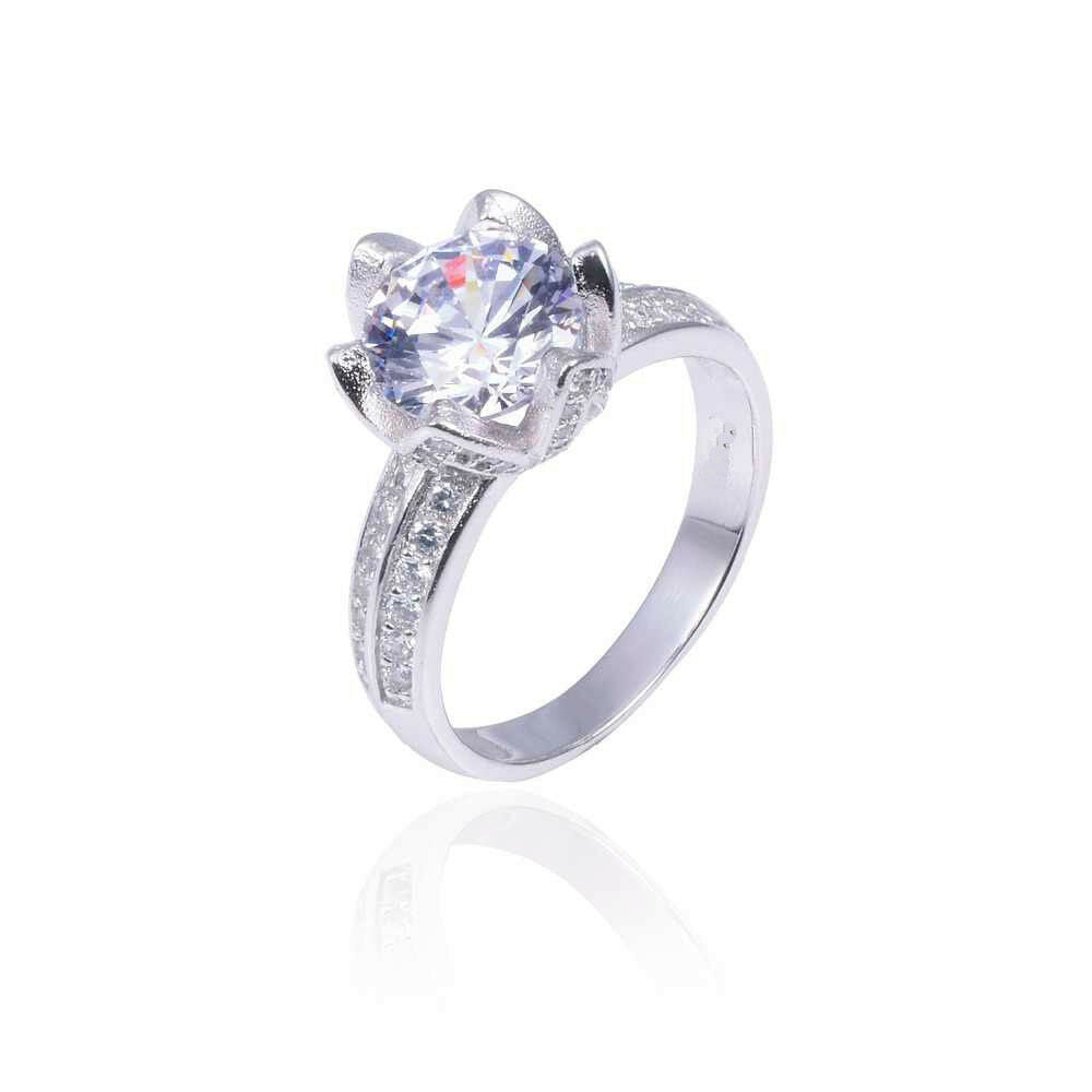 2ct Round Cut Diamond Engagement Ring 18k White Gold Finish Lotus Flower Design