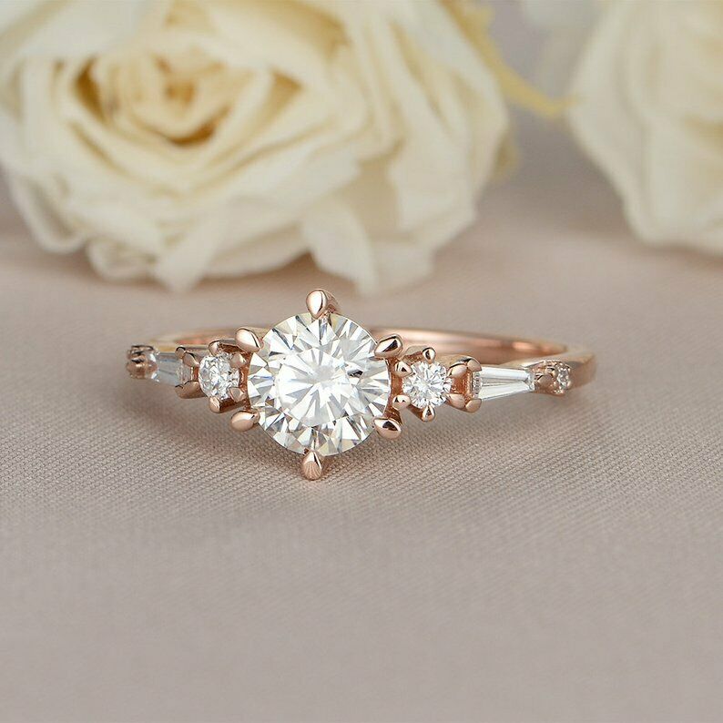 2ct Round Cut Diamond Engagement Ring Accents with Solitaire 14k Rose Gold Over
