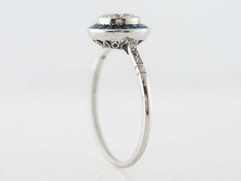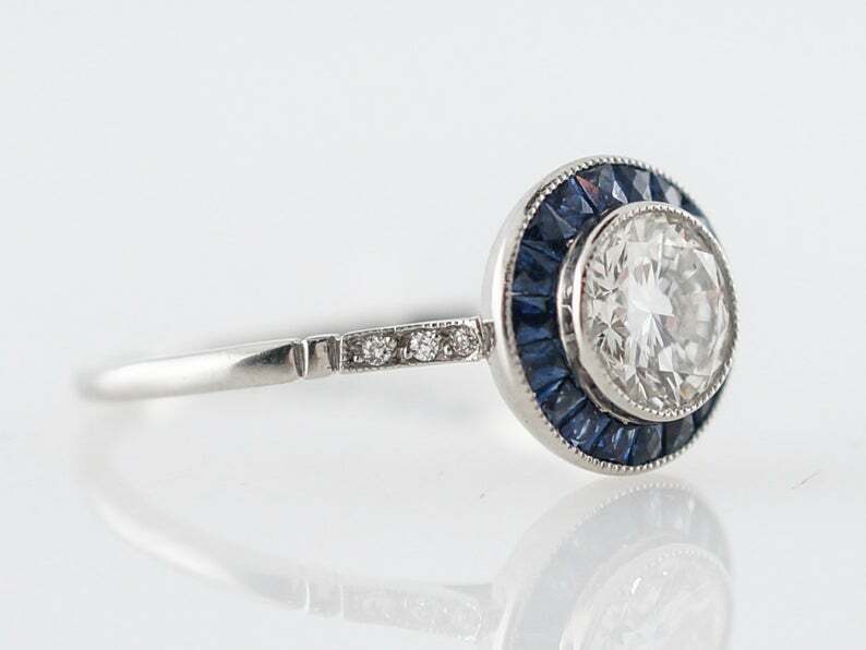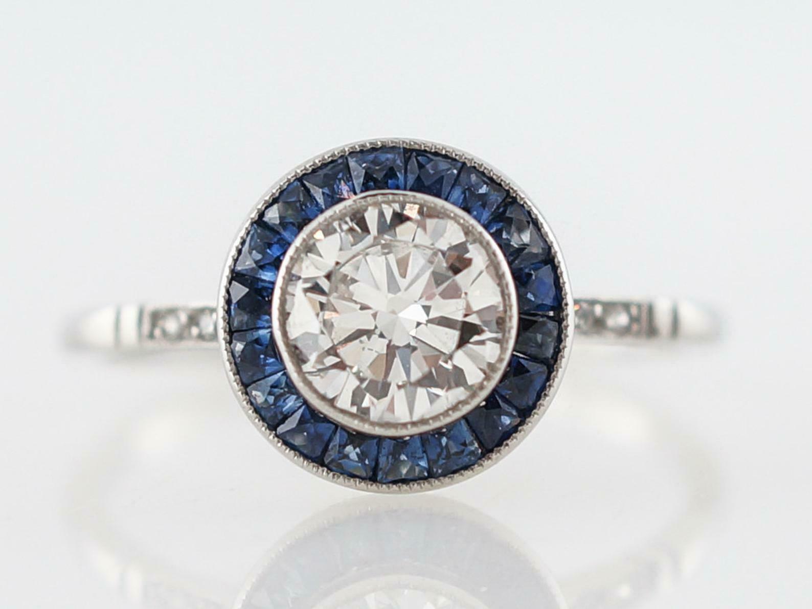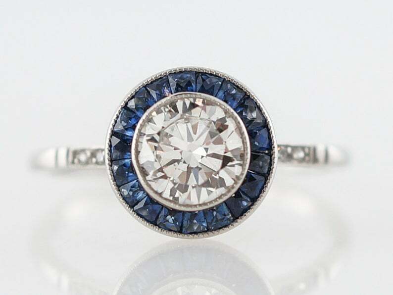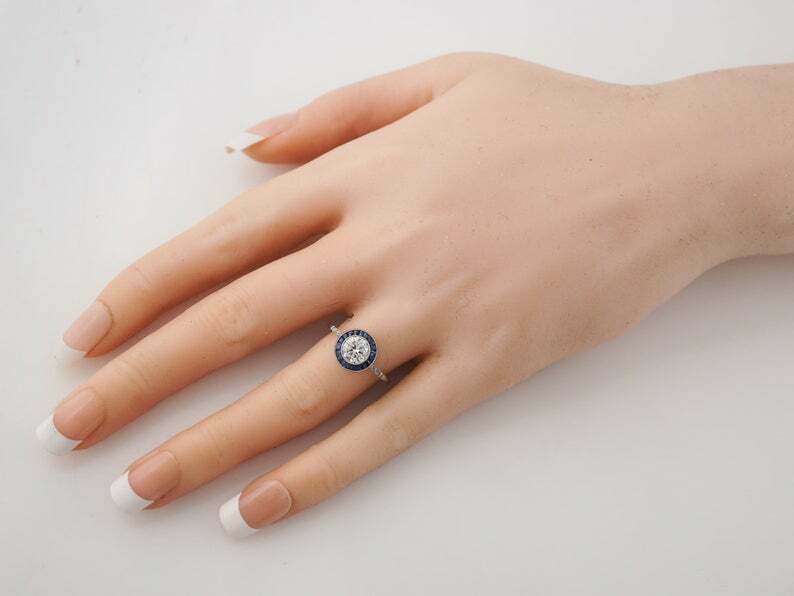 2ct Round Cut Diamond Engagement Ring Art Deco Sapphire Halo 14k White Gold Over