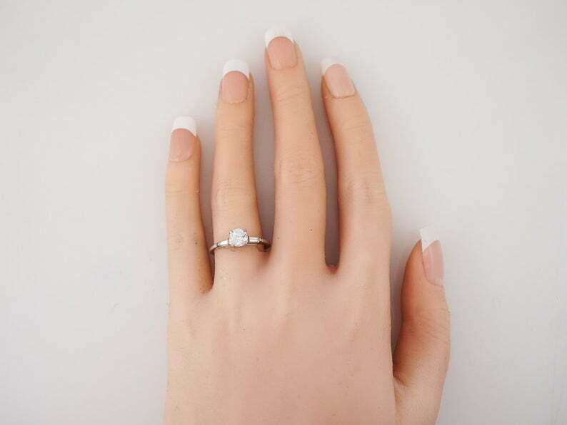 2ct Round Cut Diamond Engagement Ring Baguette Accent Trilogy 14k White Gold Over