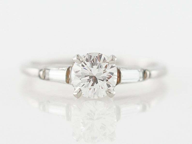 2ct Round Cut Diamond Engagement Ring Baguette Accent Trilogy 14k WhiteGold Over