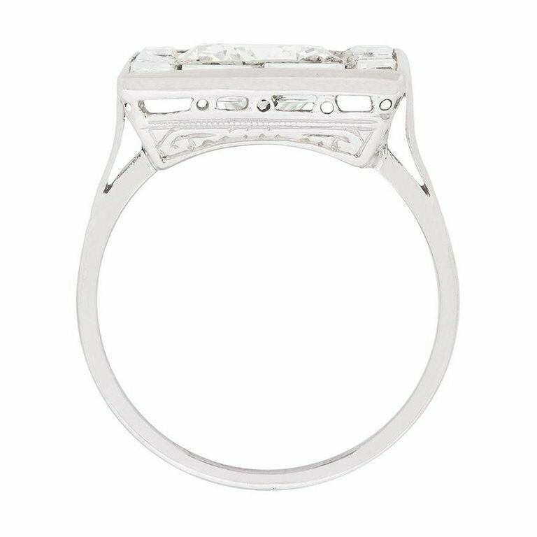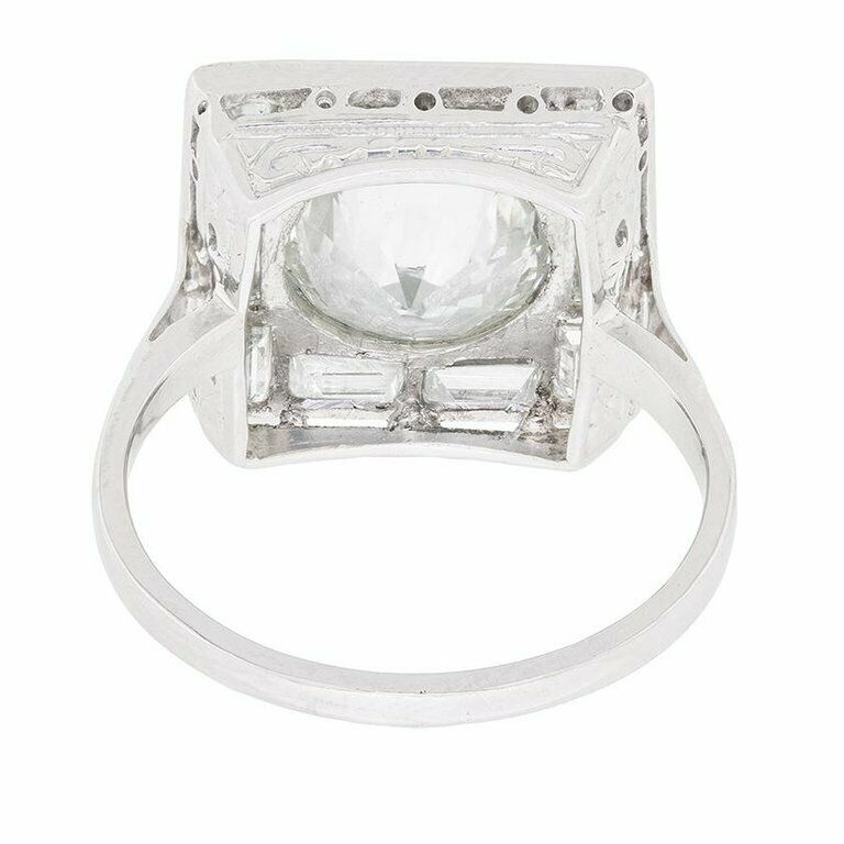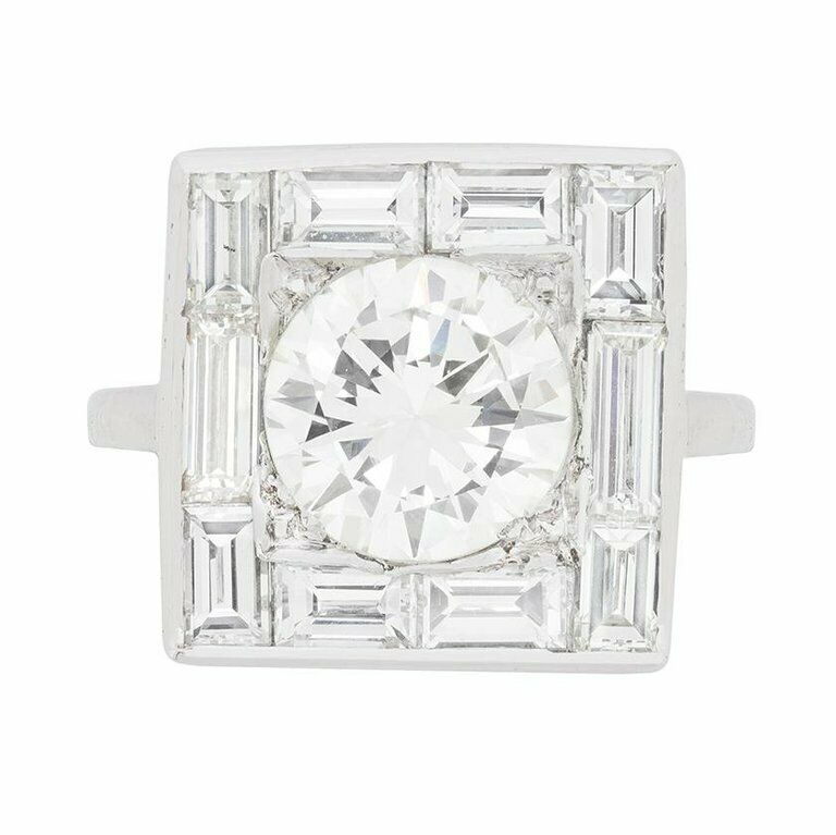2ct Round Cut Diamond Engagement Ring Baguette Art Deco 14k White Gold Finish