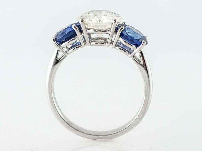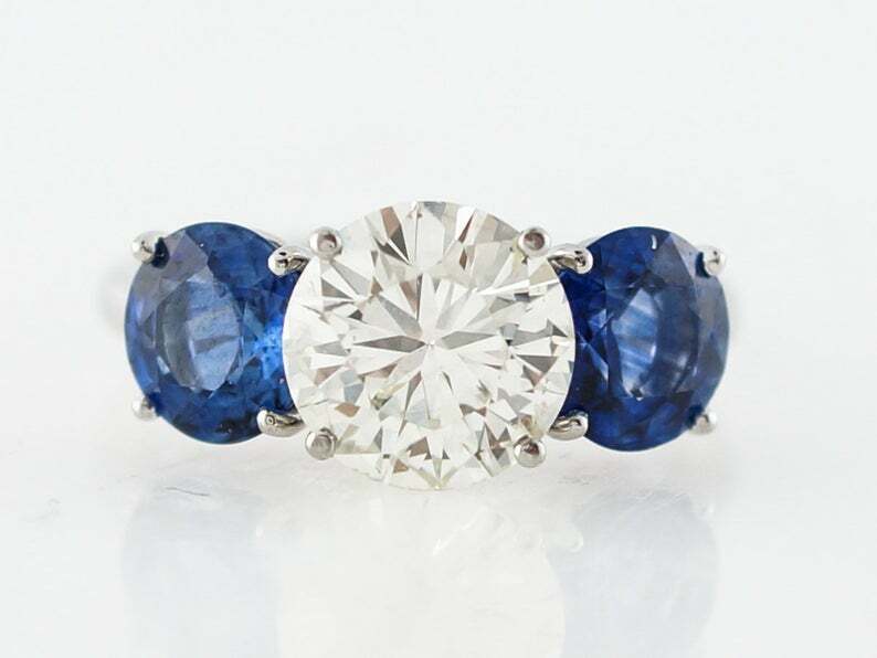 2ct Round Cut Diamond Engagement Ring Blue Sapphire Trilogy 14k WhiteGold Finish