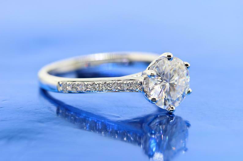 2ct Round Cut Diamond Engagement Ring Bridal Set 14k White Gold Over with Accent
