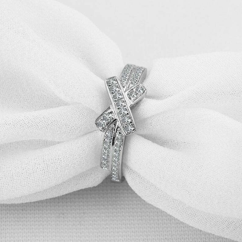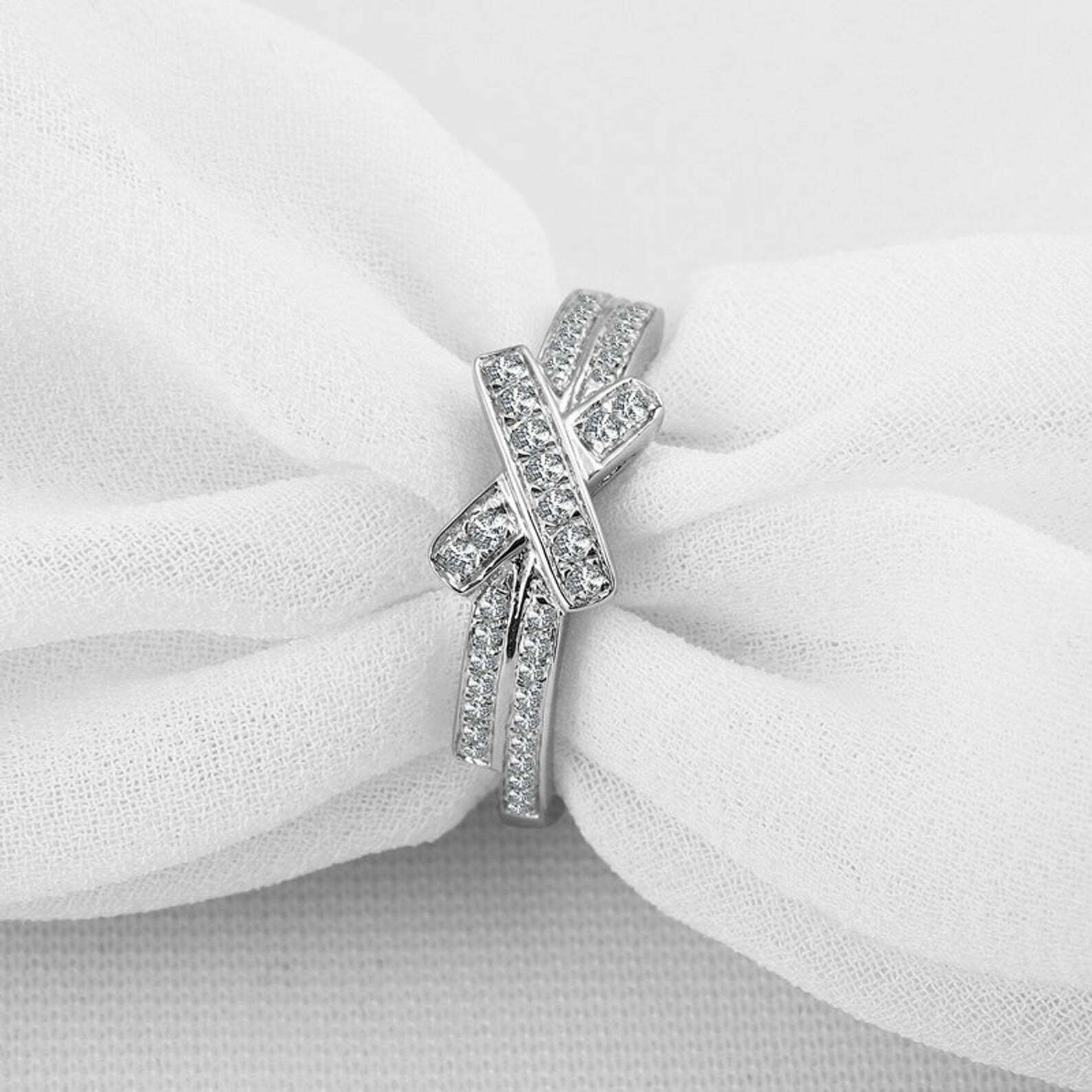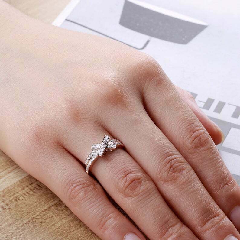 2ct Round Cut Diamond Engagement Ring Dual Shank Cross Ribbon 14k White Gold Over