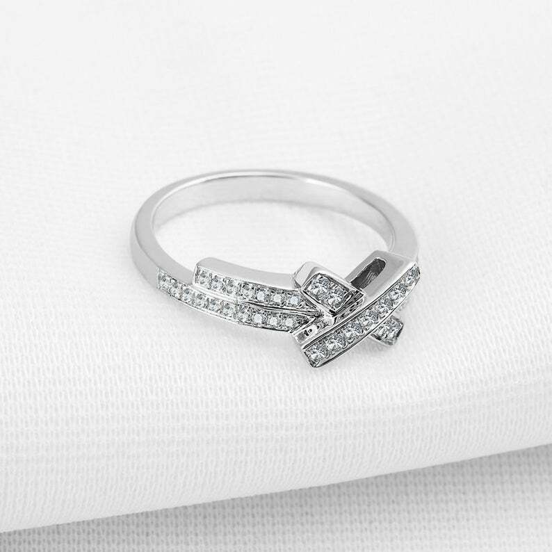 2ct Round Cut Diamond Engagement Ring Dual Shank Cross Ribbon 14k WhiteGold Over