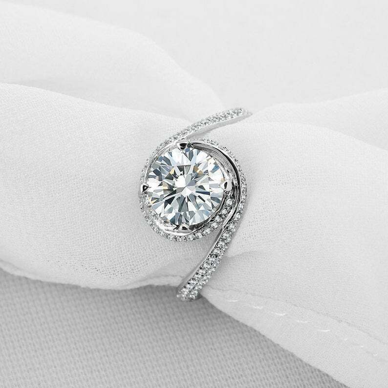 2ct Round Cut Diamond Engagement Ring Dual Swirl Solitaire 14k White Gold Finish