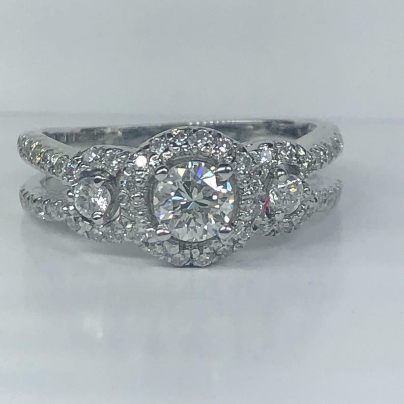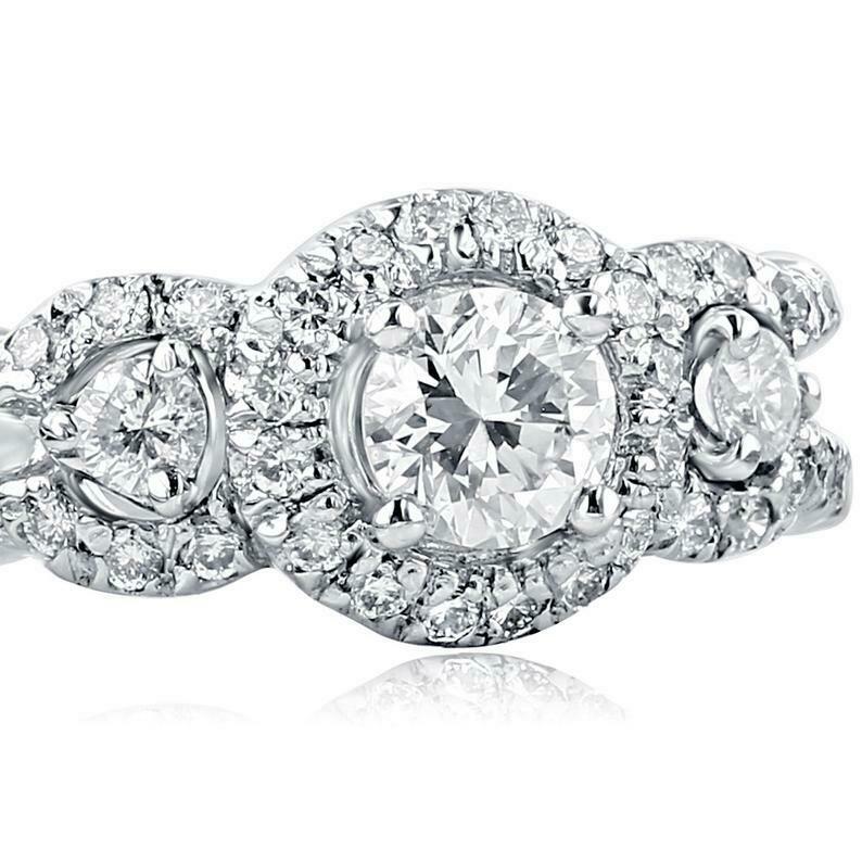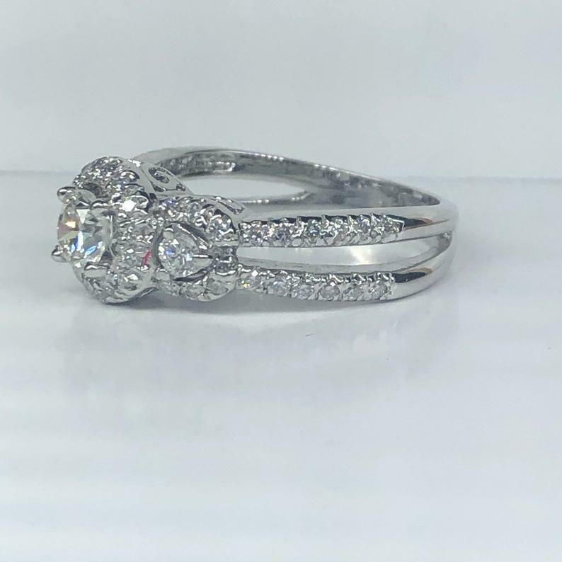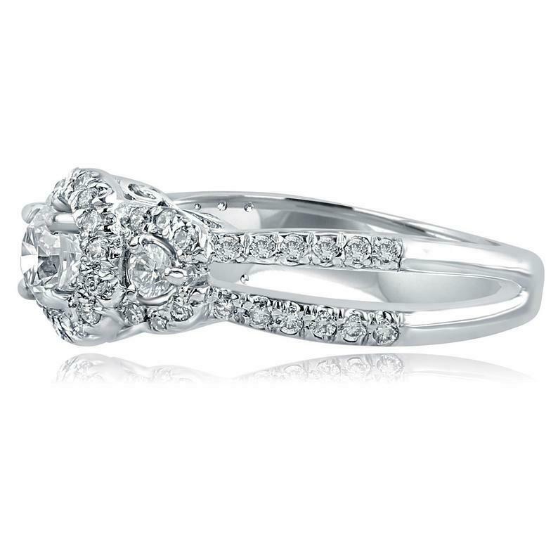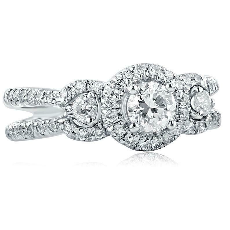 2ct Round Cut Diamond Engagement Ring Halo Trilogy Split Band 14k White Gold Over