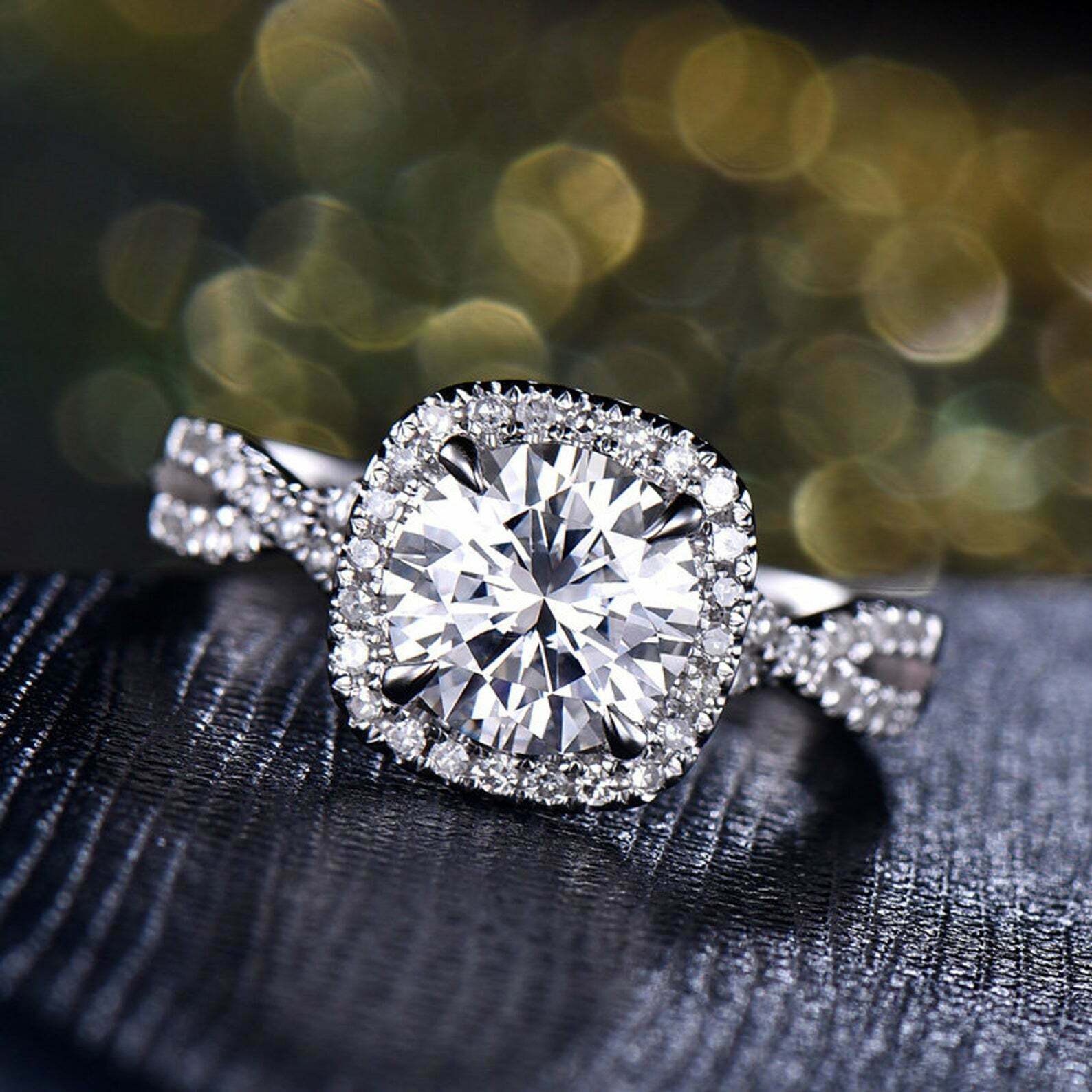 2ct Round Cut Diamond Engagement Ring Halo Twisted Promise 14k White Gold Finish