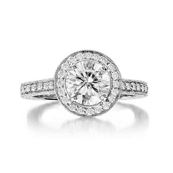2ct Round Cut Diamond Engagement Ring Milgrain Halo Solitaire 18k WhiteGold Over