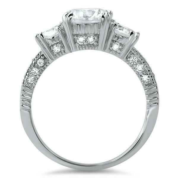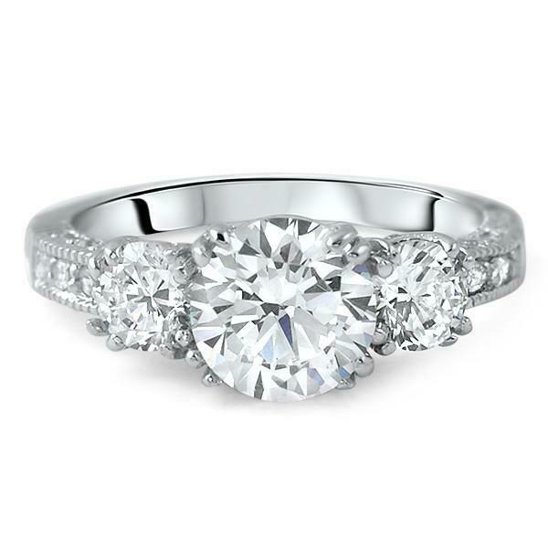 2ct Round Cut Diamond Engagement Ring Milgrain Trilogy 14k White Gold Finish