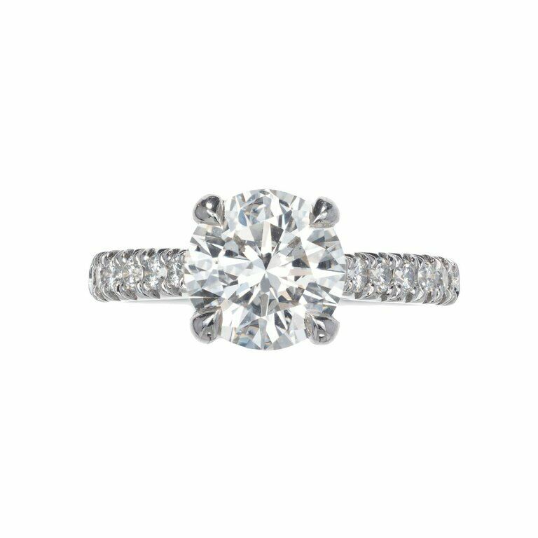 2ct Round Cut Diamond Engagement Ring Round Accent Solitaire 14k White Gold Over