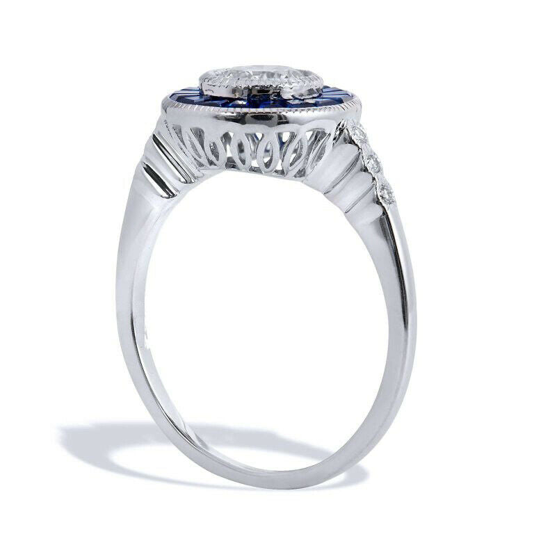 2ct Round Cut Diamond Engagement Ring Sapphire Halo Art Deco 14k White Gold Over