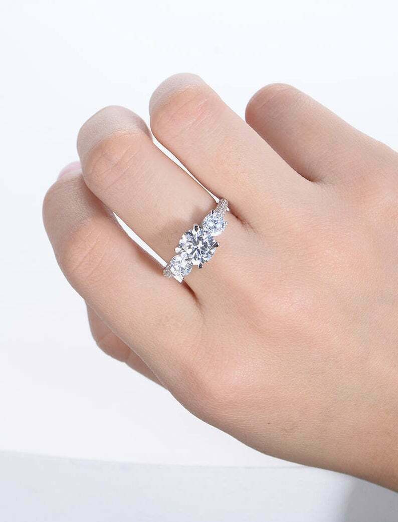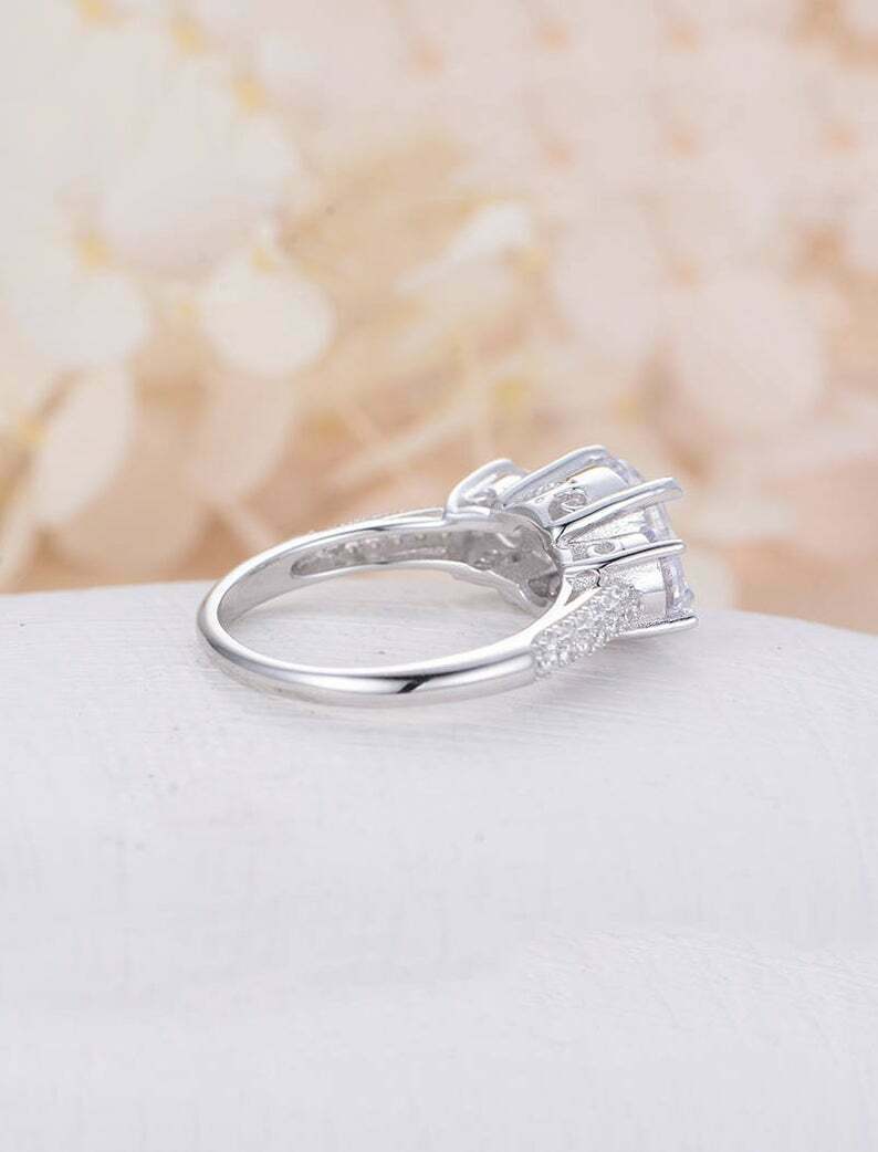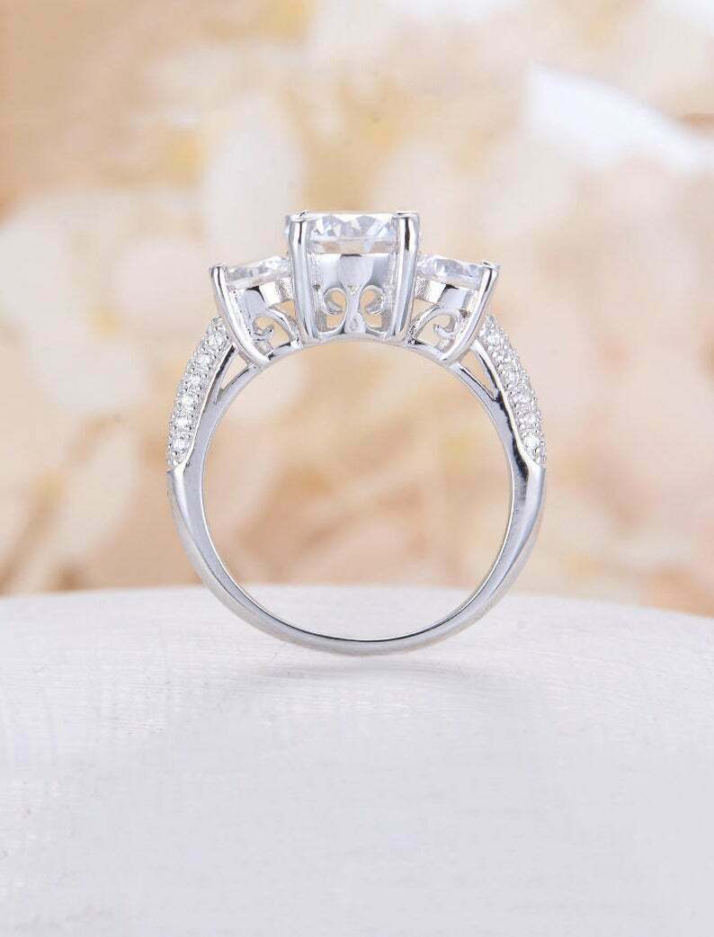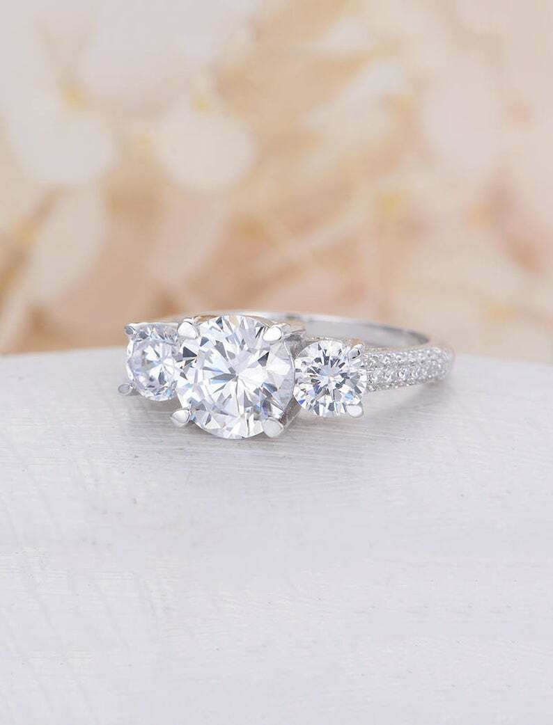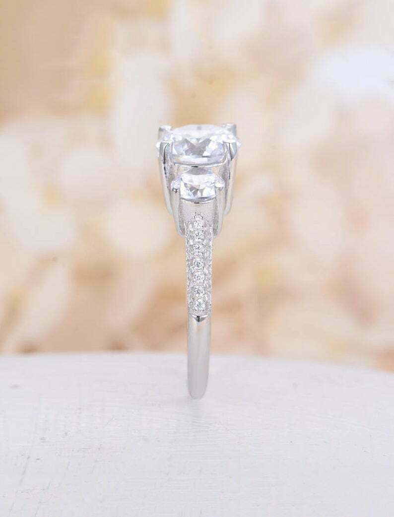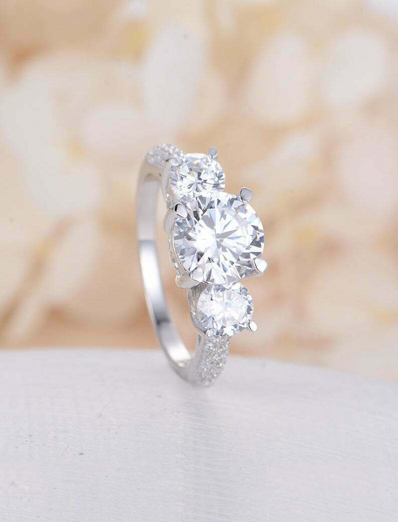 2ct Round Cut Diamond Engagement Ring Trilogy 14k White Gold Over Cluster Accent