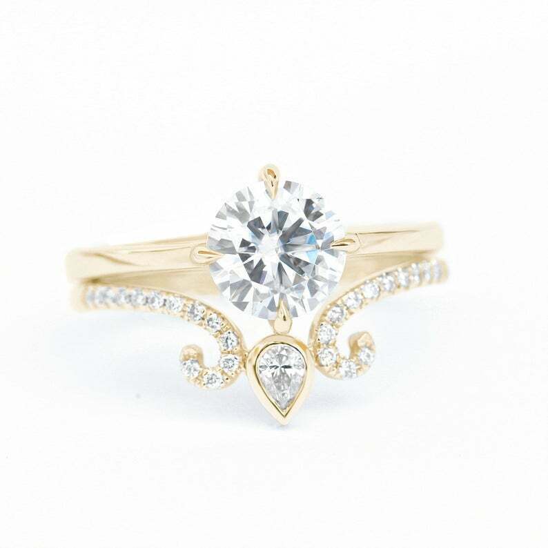 2ct Round Cut Diamond Engagement Ring Unique Bridal Set 14k Yellow Gold Finish