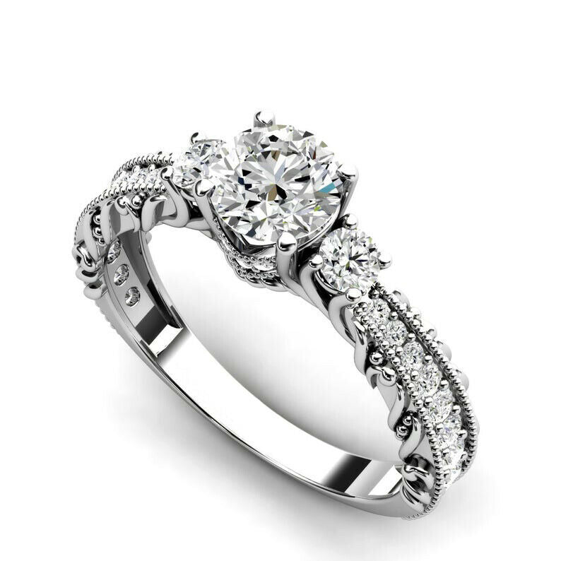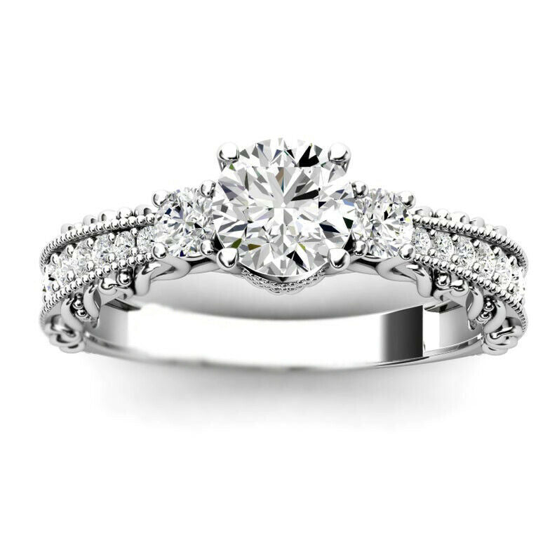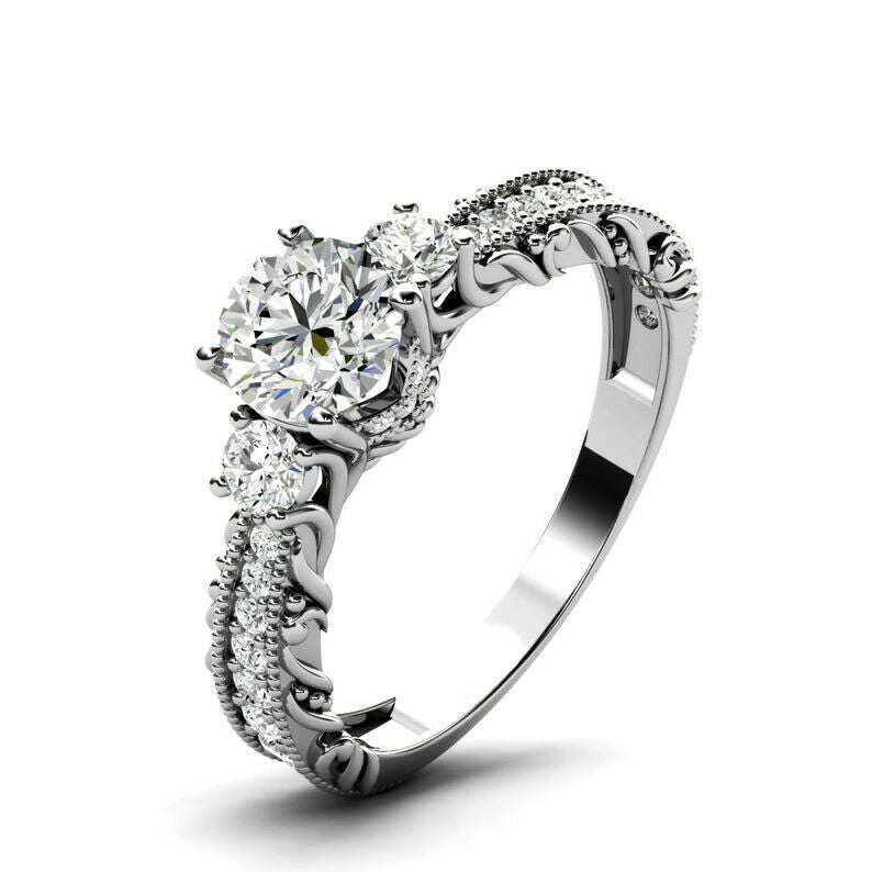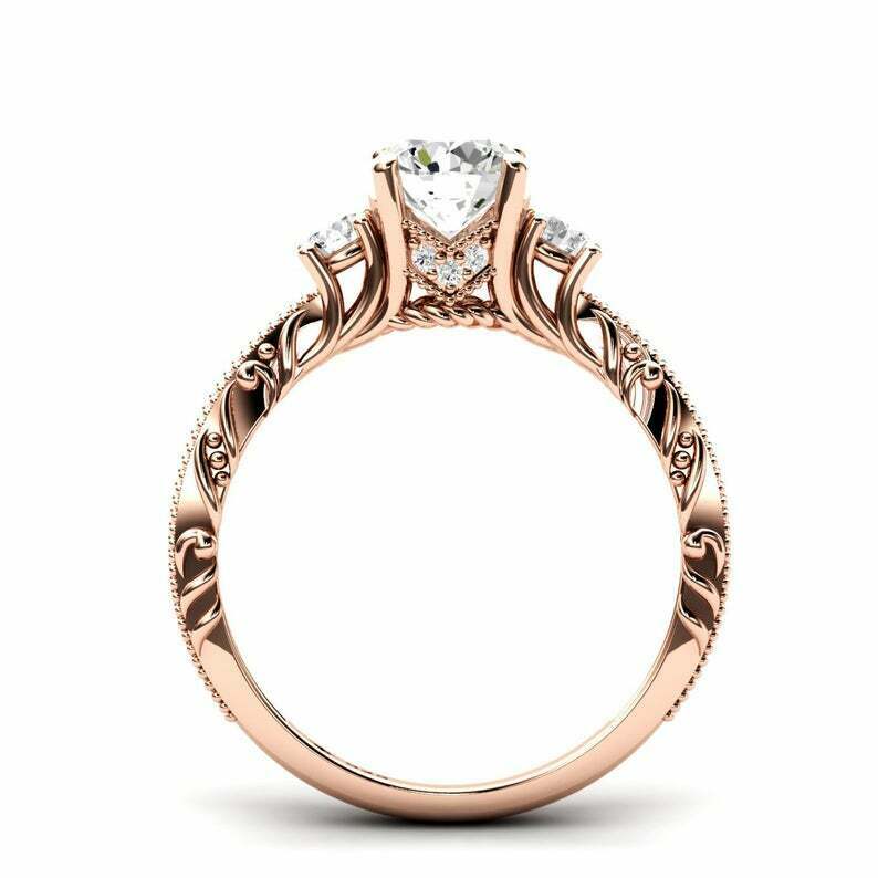 2ct Round Cut Diamond Filigree Solitaire Round Accent Ring 14k Rose Gold Finish