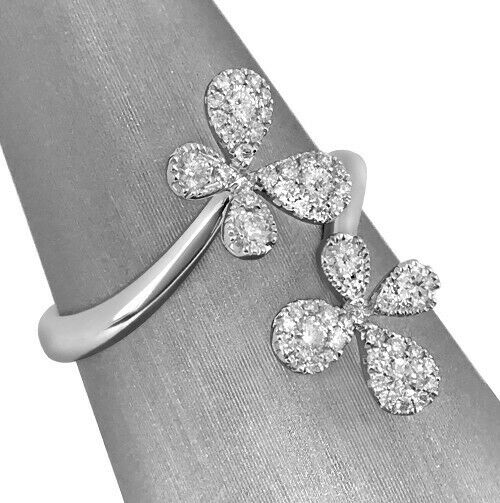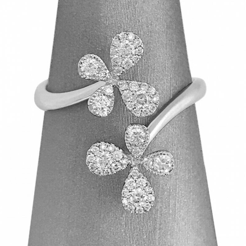 2Ct Round Cut Diamond Floral Open ByPass Engagement Ring 14K White Gold Finish