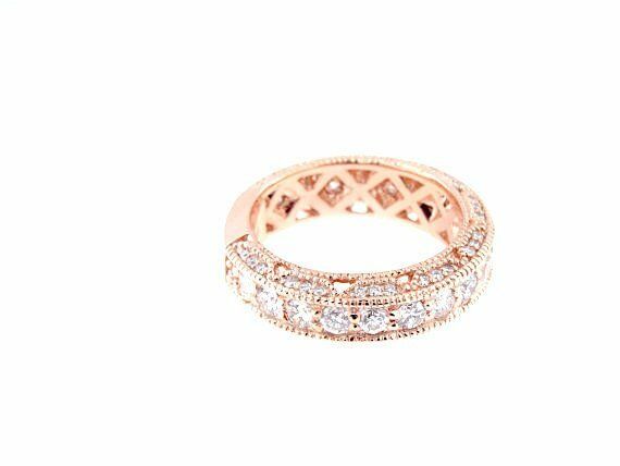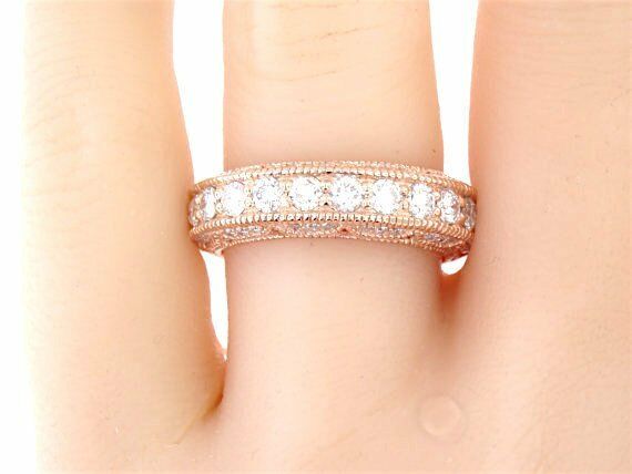 2ct Round Cut Diamond Half Eternity Milgrain Wedding Ring 14k Rose Gold Finish