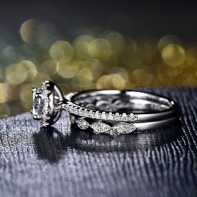 2ct Round Cut Diamond Halo Bridal Set Band Engagement Ring 14k White Gold Finish