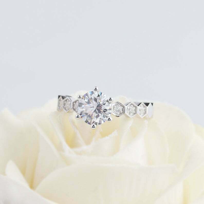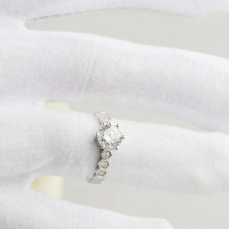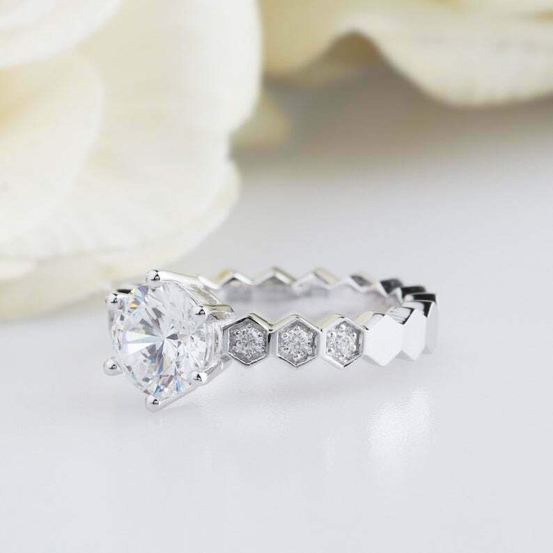 2ct Round Cut Diamond Hexagon Eternity Shank Solitaire Ring 14k WhiteGold Finish