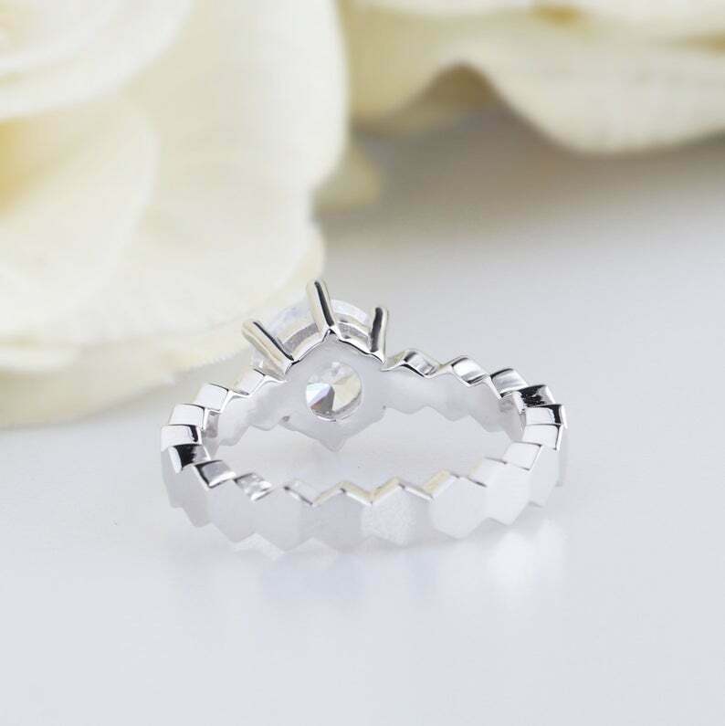 2ct Round Cut Diamond Hexagon Eternity Shank Solitaire Ring 14k White Gold Finish