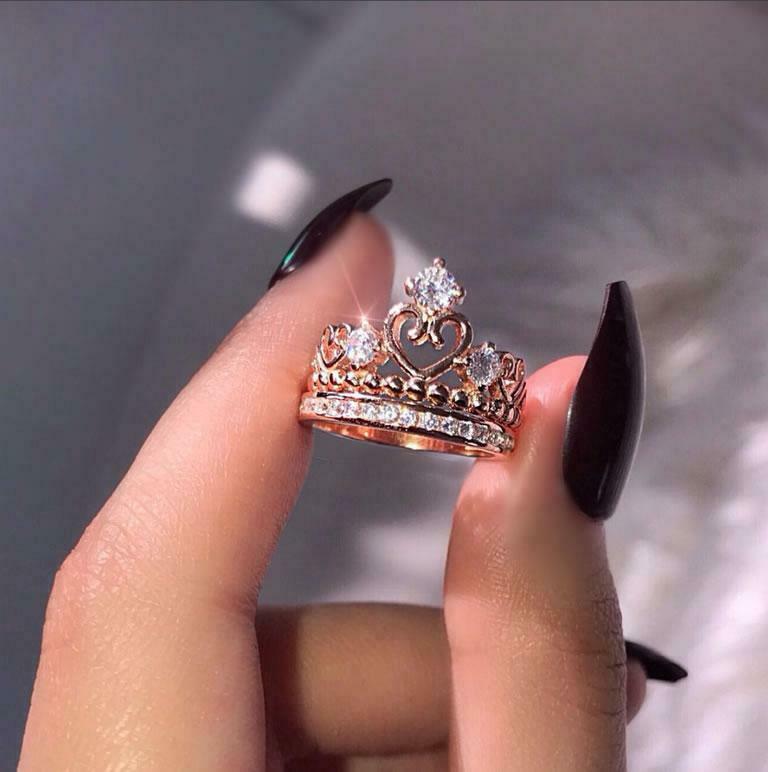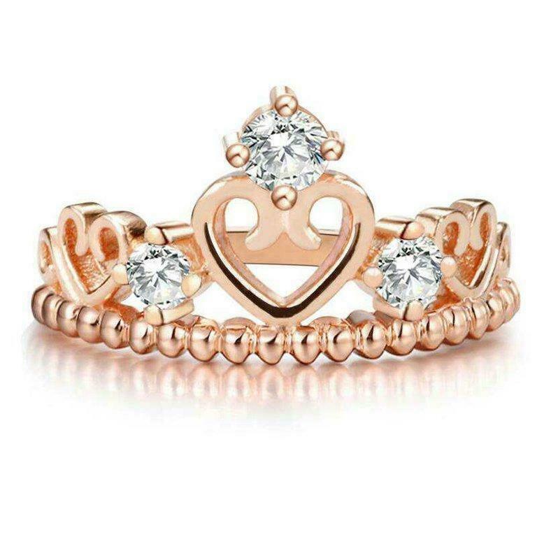 2Ct Round Cut Diamond Queens Crown Tiara Ring Bridal Set 14K Rose Gold Finish