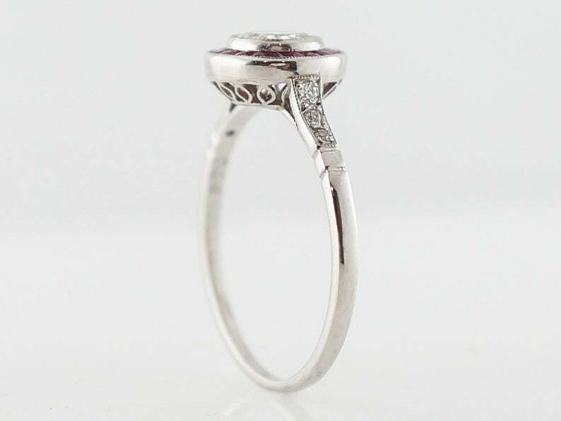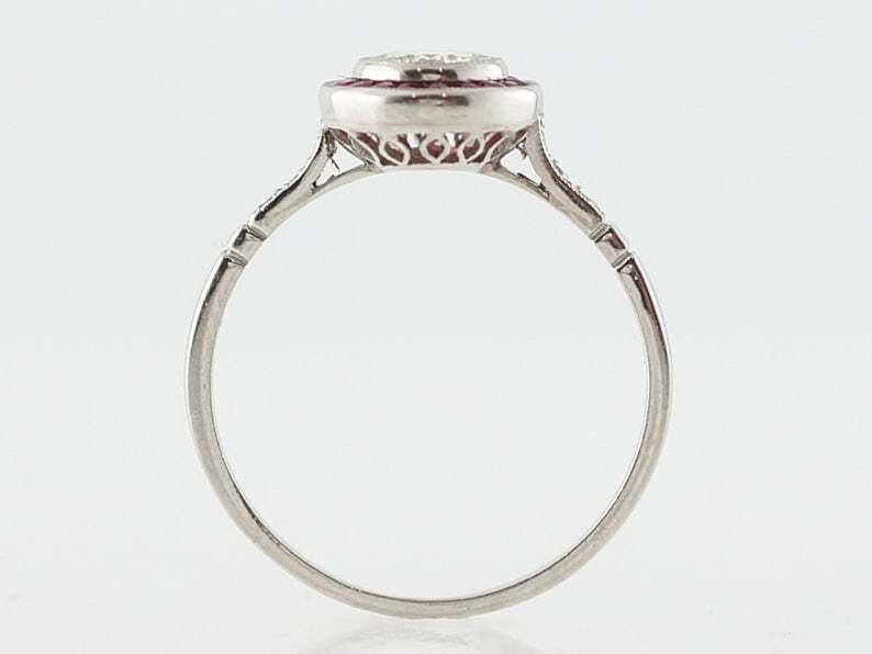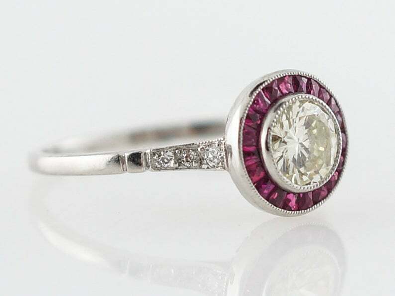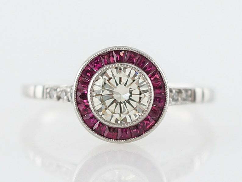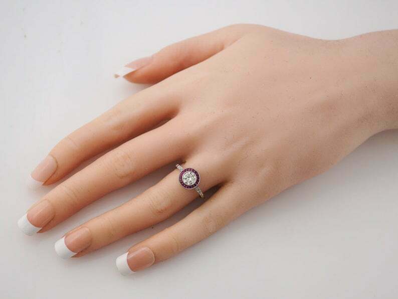 2ct Round Cut Diamond Ruby Halo Art Deco Engagement Ring 14k White Gold Finish