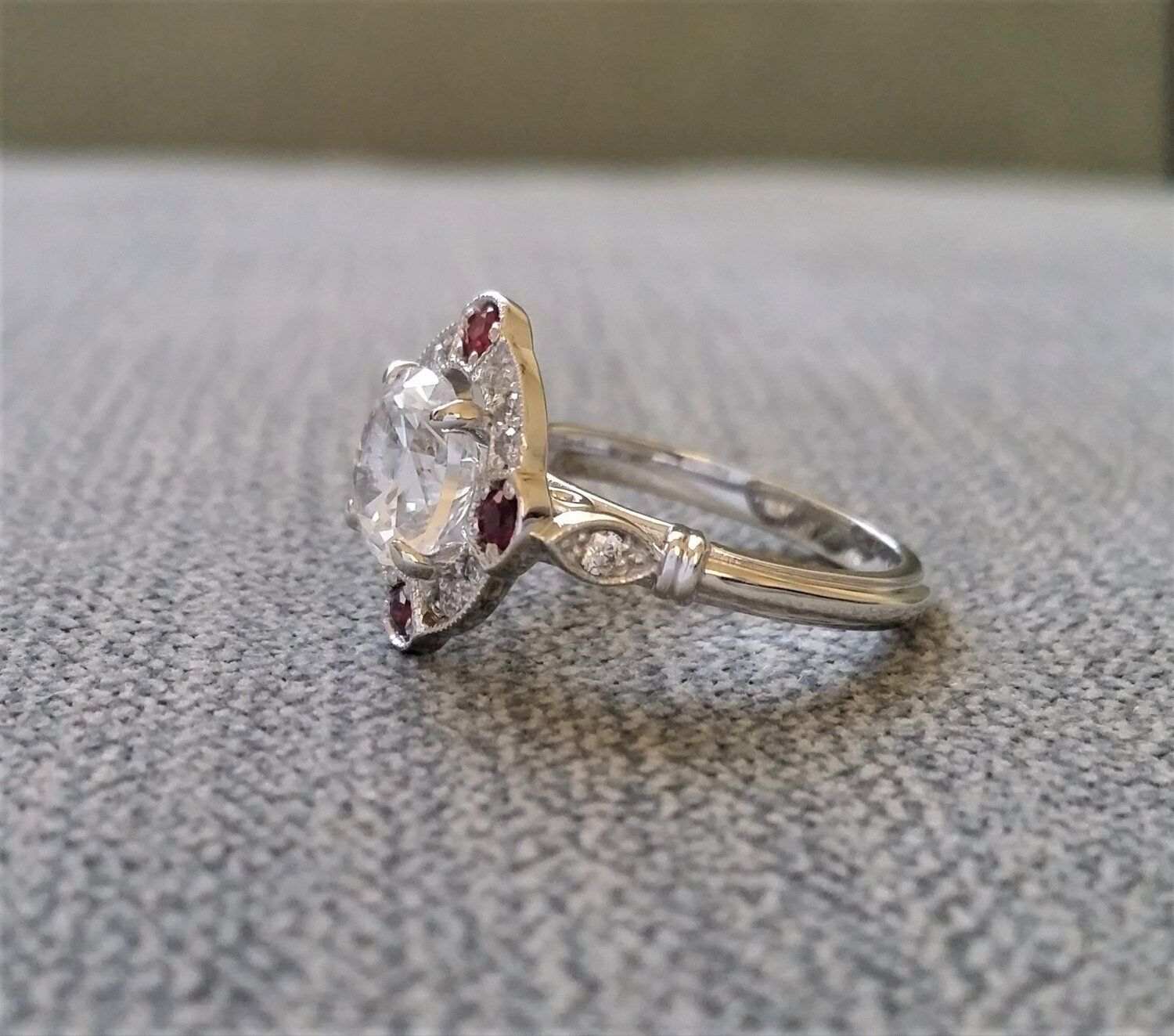 2Ct Round Cut Diamond Ruby Vintage Halo Engagement Ring 14K White Gold Finish
