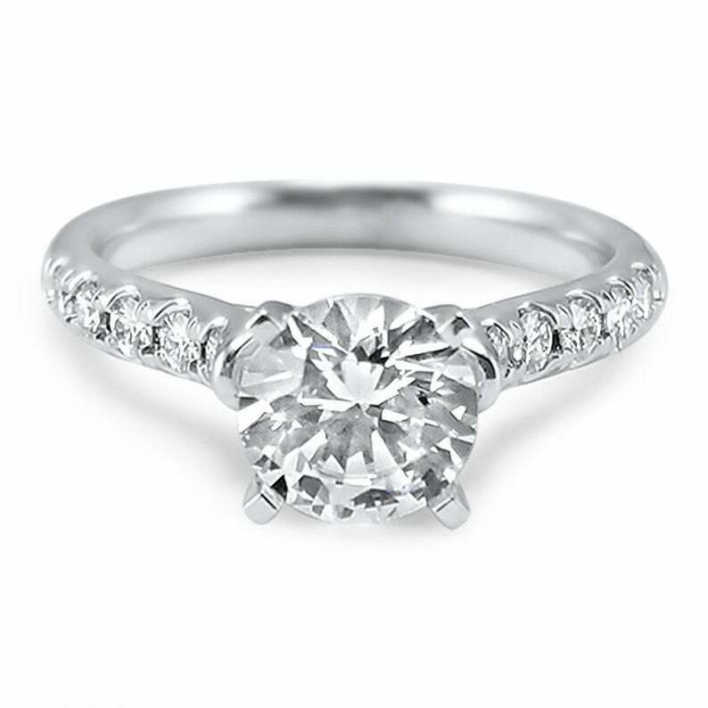 2ct Round Cut Diamond Solitaire Engagement Ring 18k White Gold Over with Accents