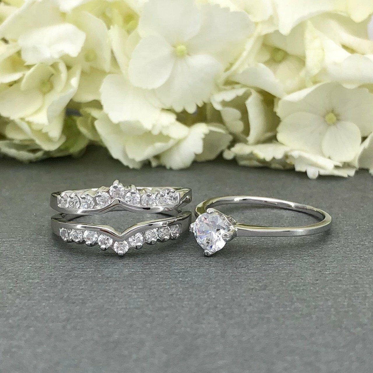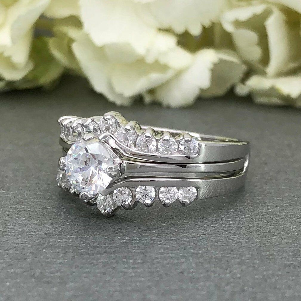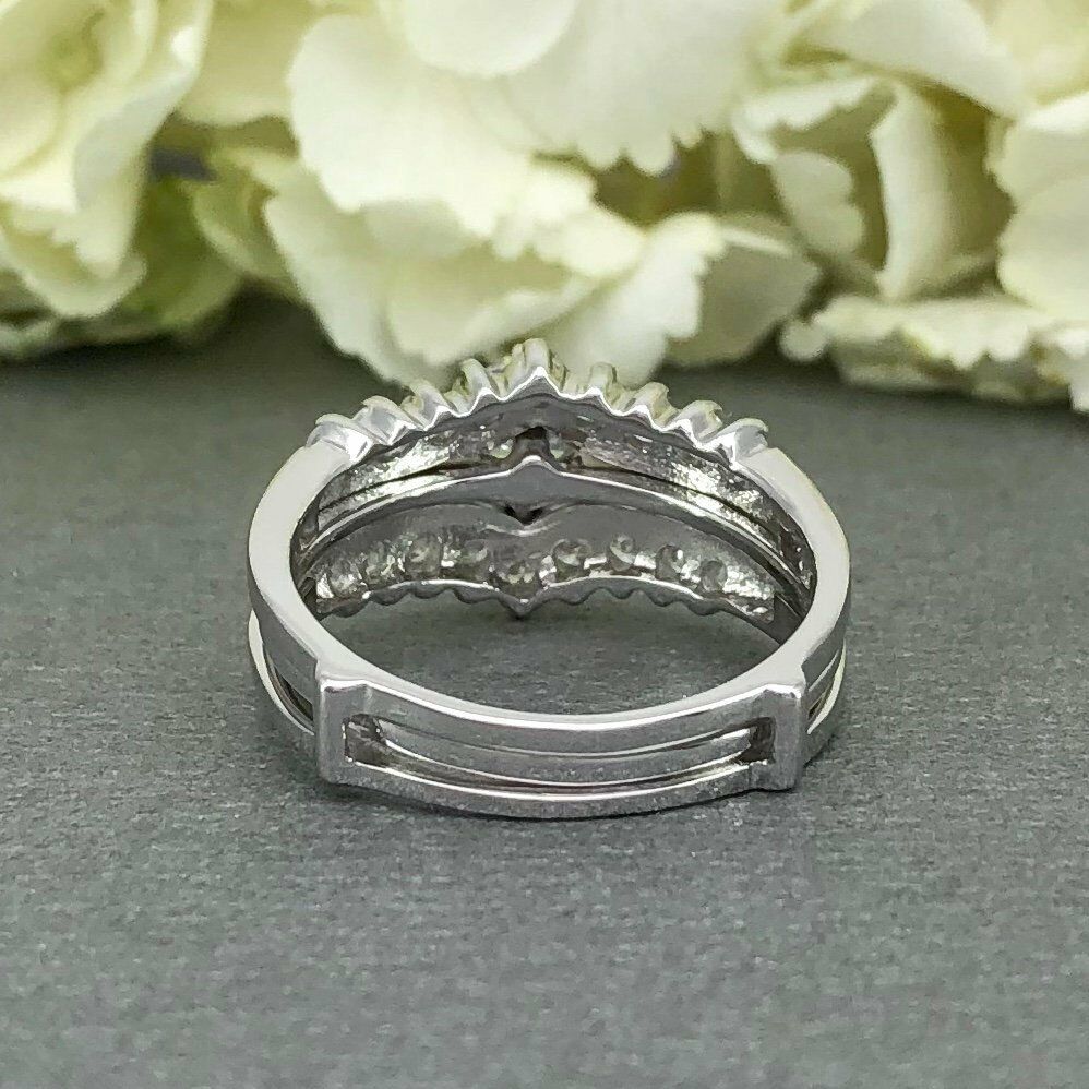 2ct Round Cut Diamond Solitaire Engagement Ring Ring Guard 14k White Gold Finish