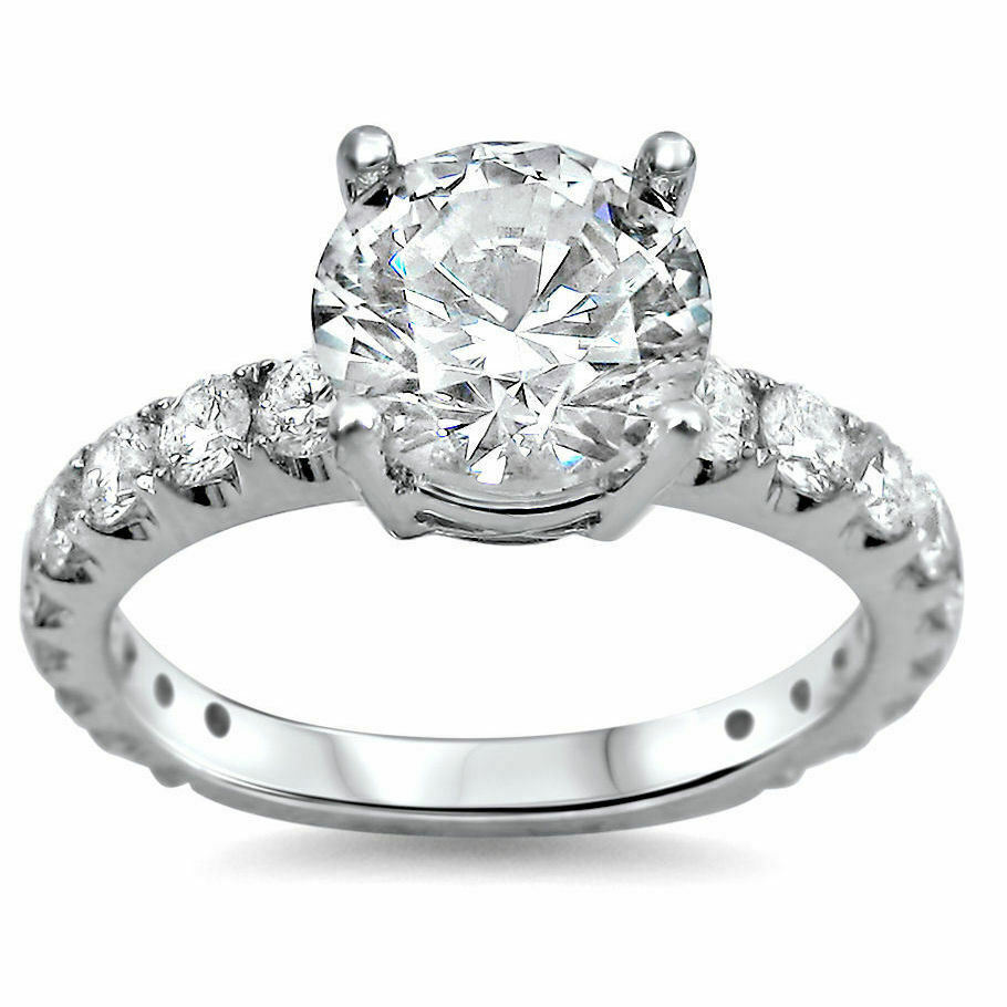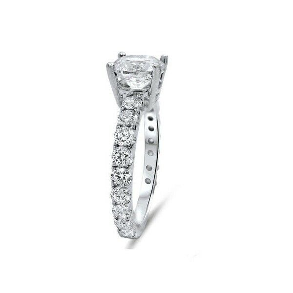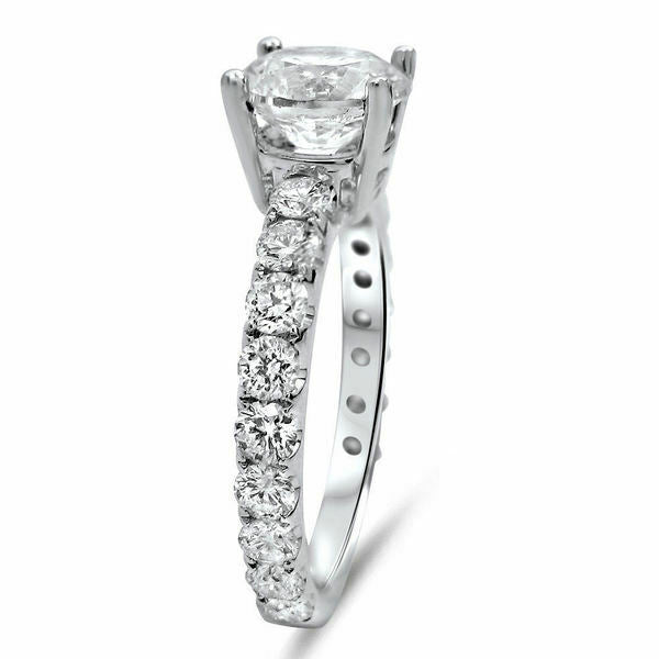 2Ct Round Cut Diamond Solitaire with Accents Engagement Ring 18K White Gold Over