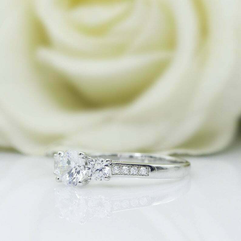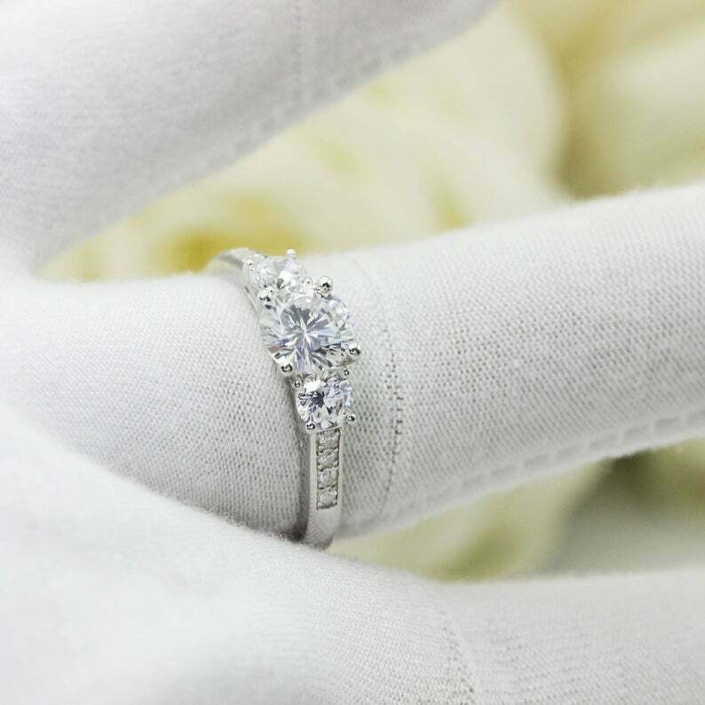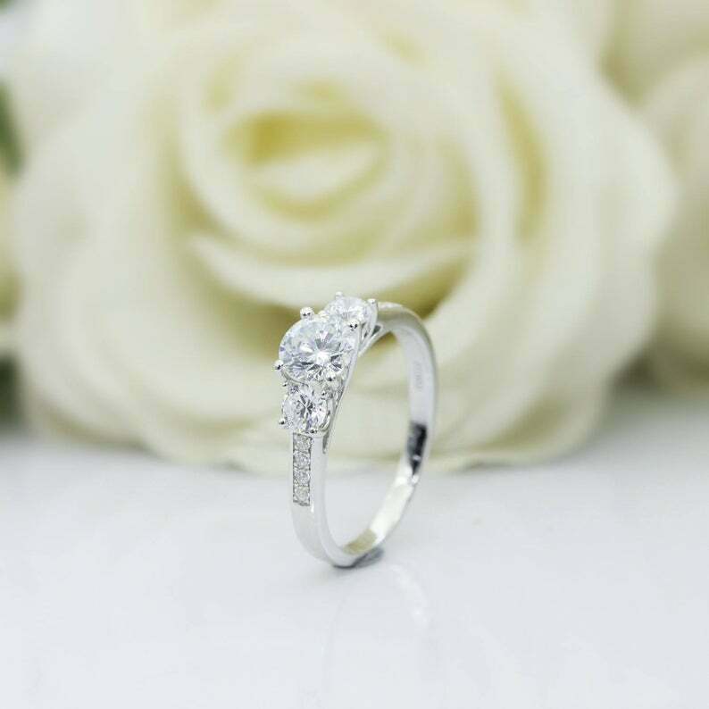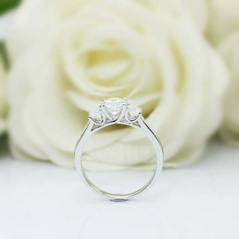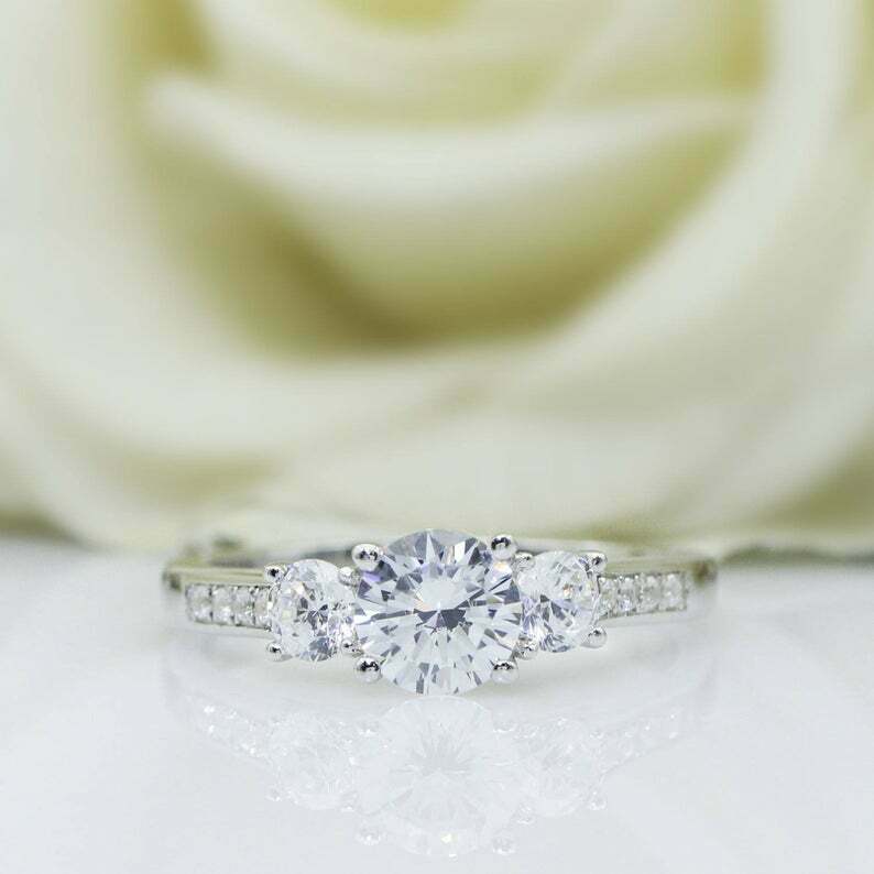 2ct Round Cut Diamond Solitaire with Accents Trilogy Ring 14k White Gold Finish