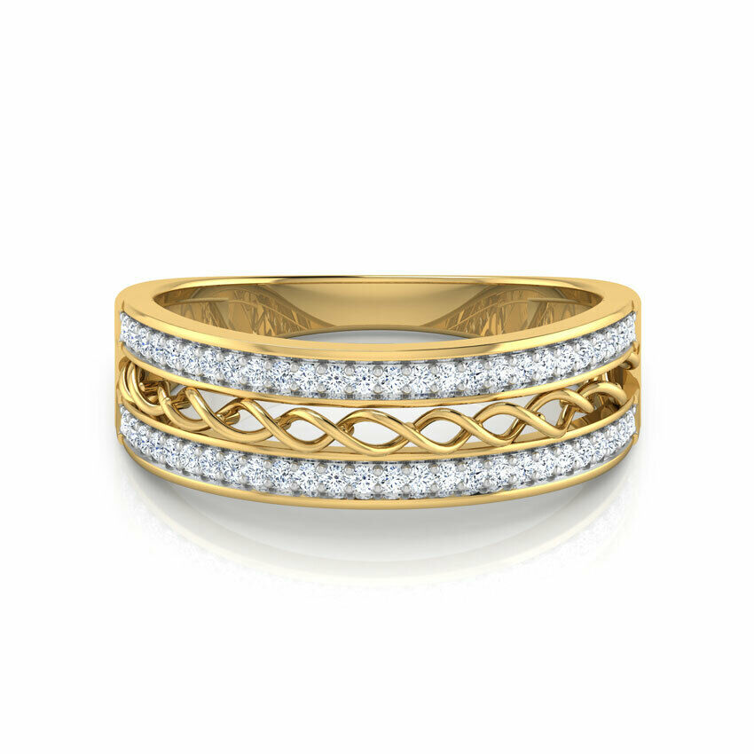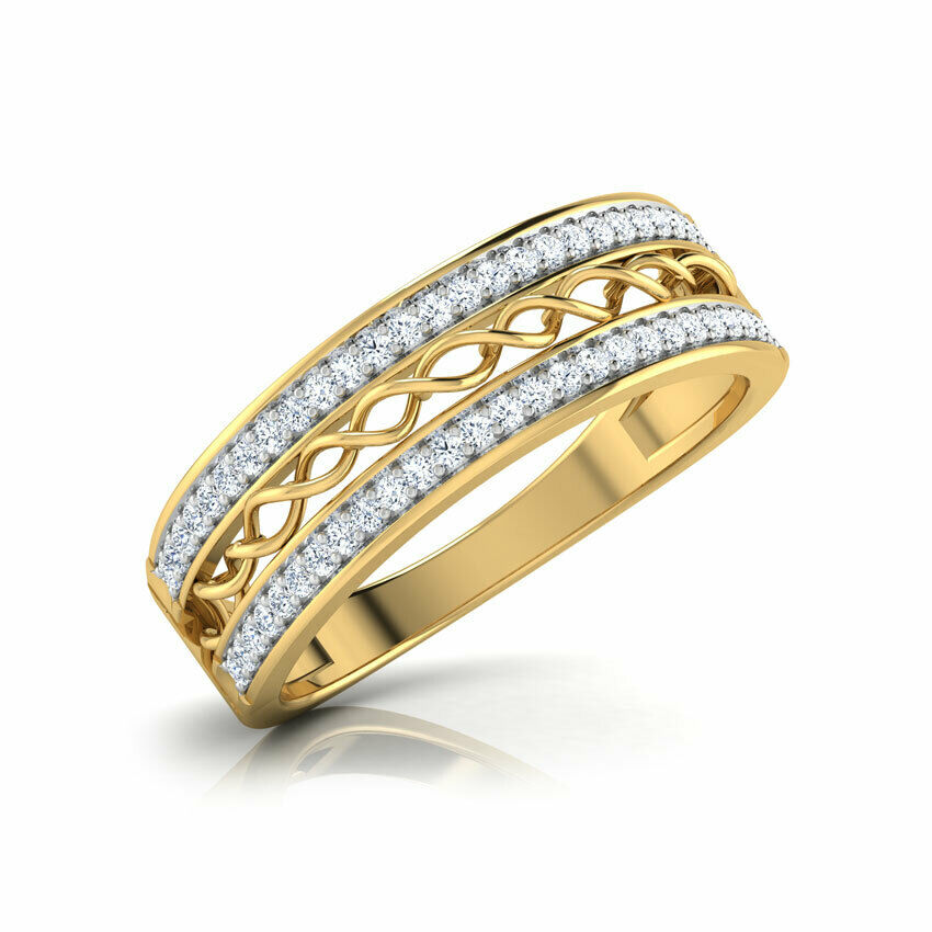 2Ct Round Cut Diamond Stylish Art Deco Wedding Ring Band 14K Yellow Gold Finish