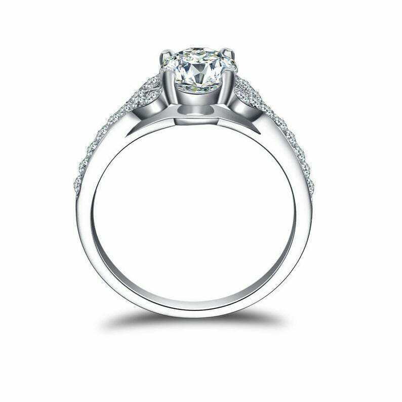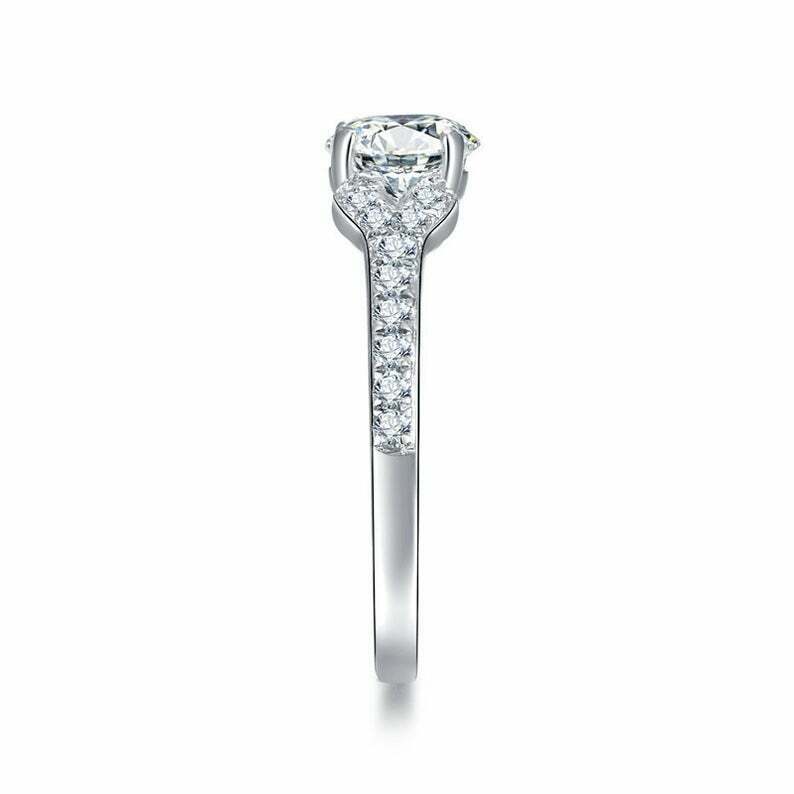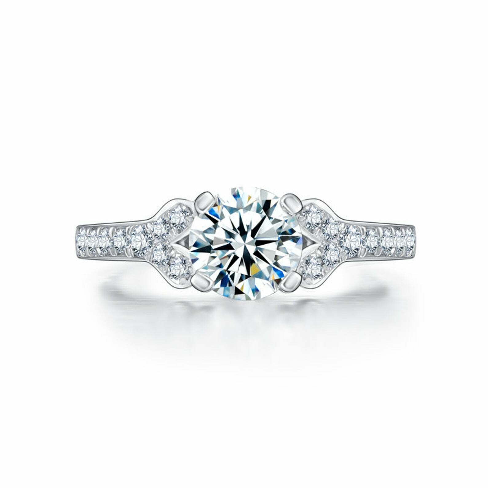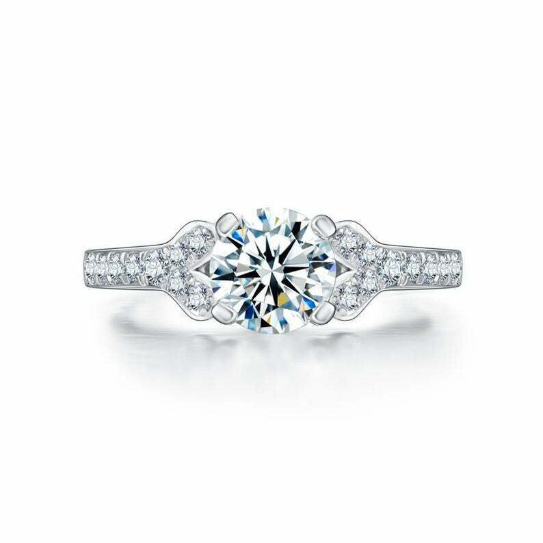 2ct Round Cut Diamond Stylish Solitaire with Accents Ring 14k White Gold Finish