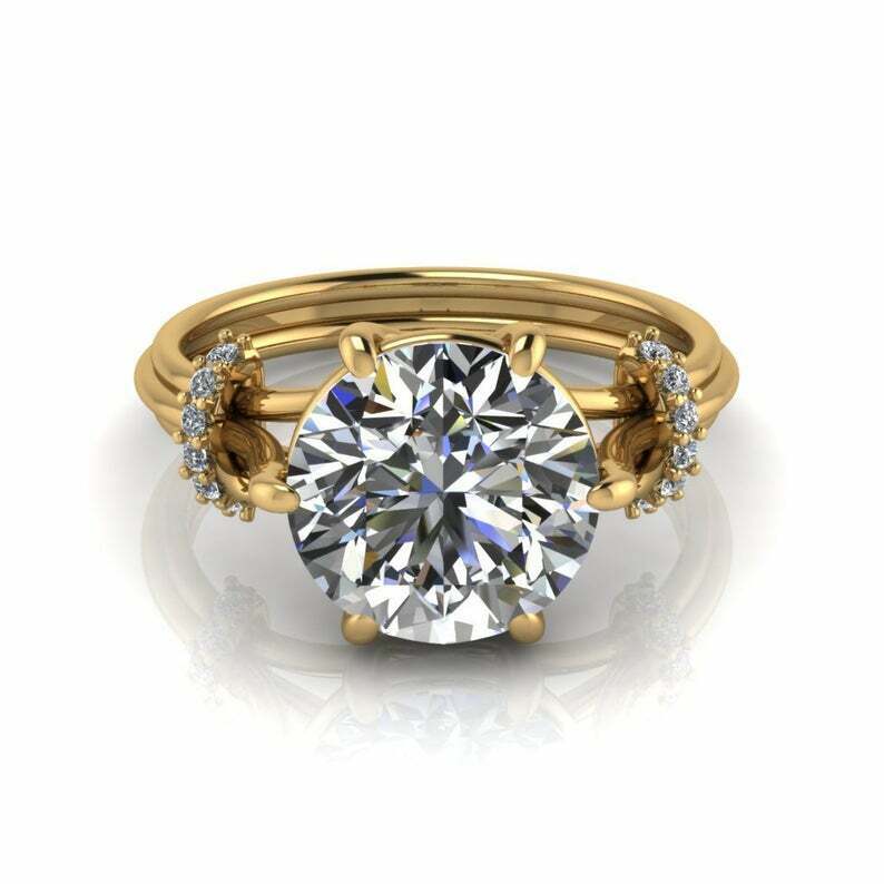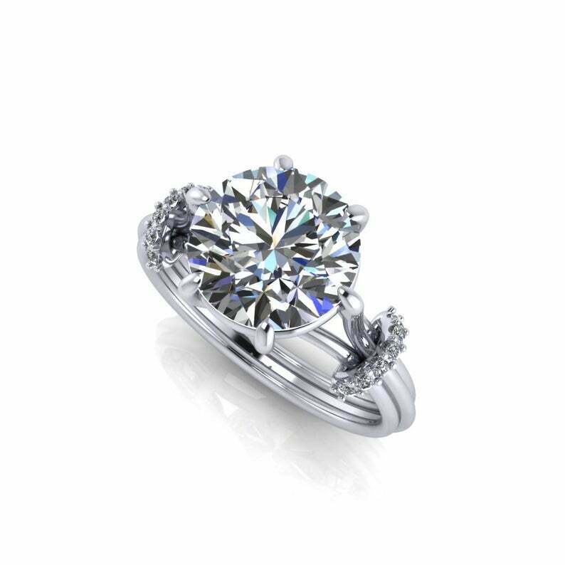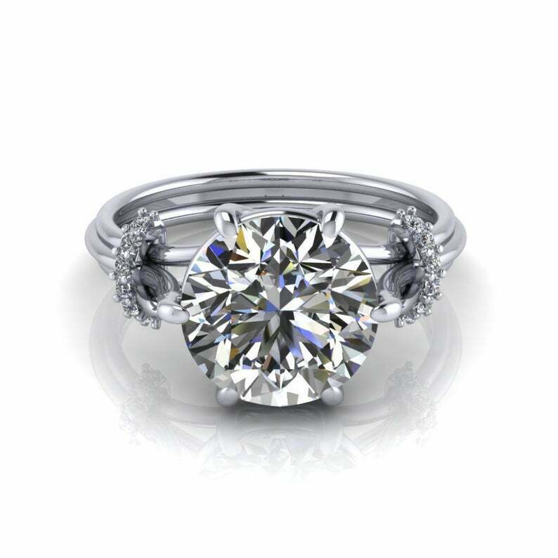 2ct Round Cut Diamond Stylish Solitaire with Accents Ring 18k White Gold Finish