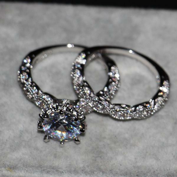 2ct Round Cut Diamond Vintage Bridal Set Engagement Ring 14k White Gold Finish