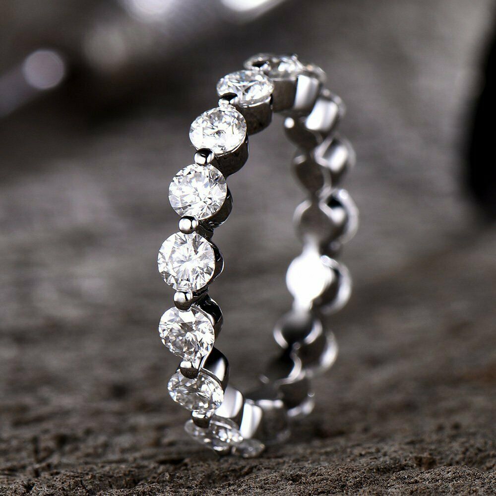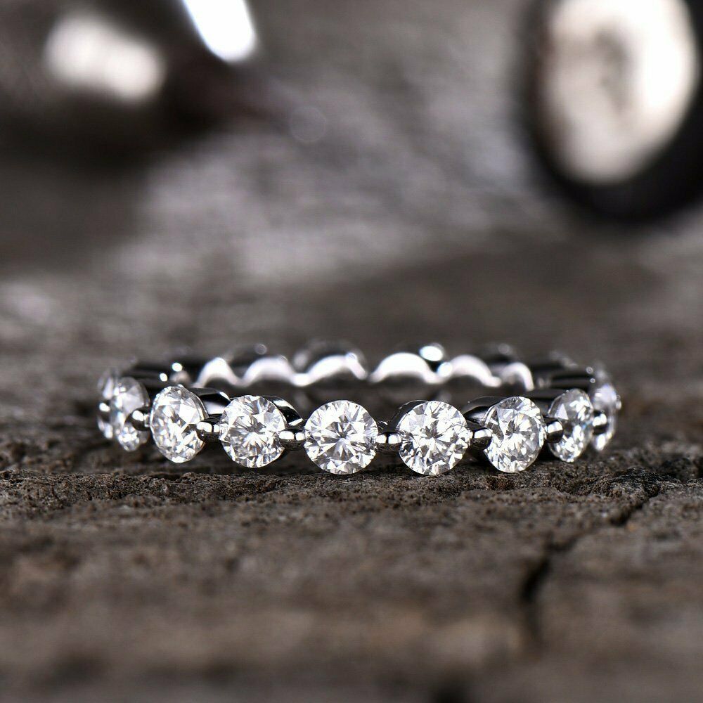 2ct Round Cut Diamond Wedding Band Stackable Full Eternity 14k White Gold Finish