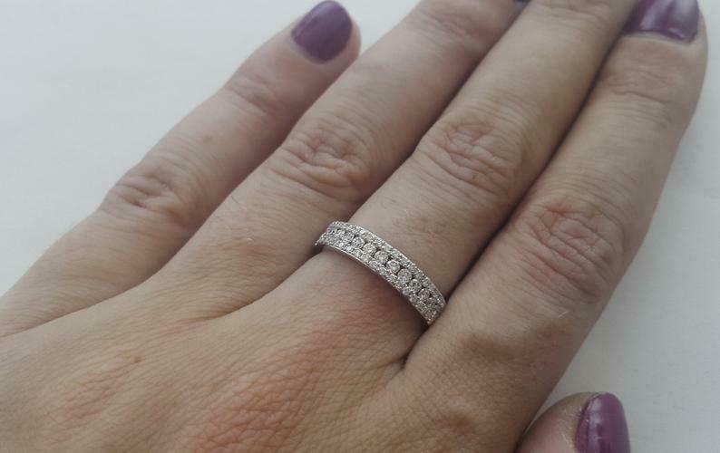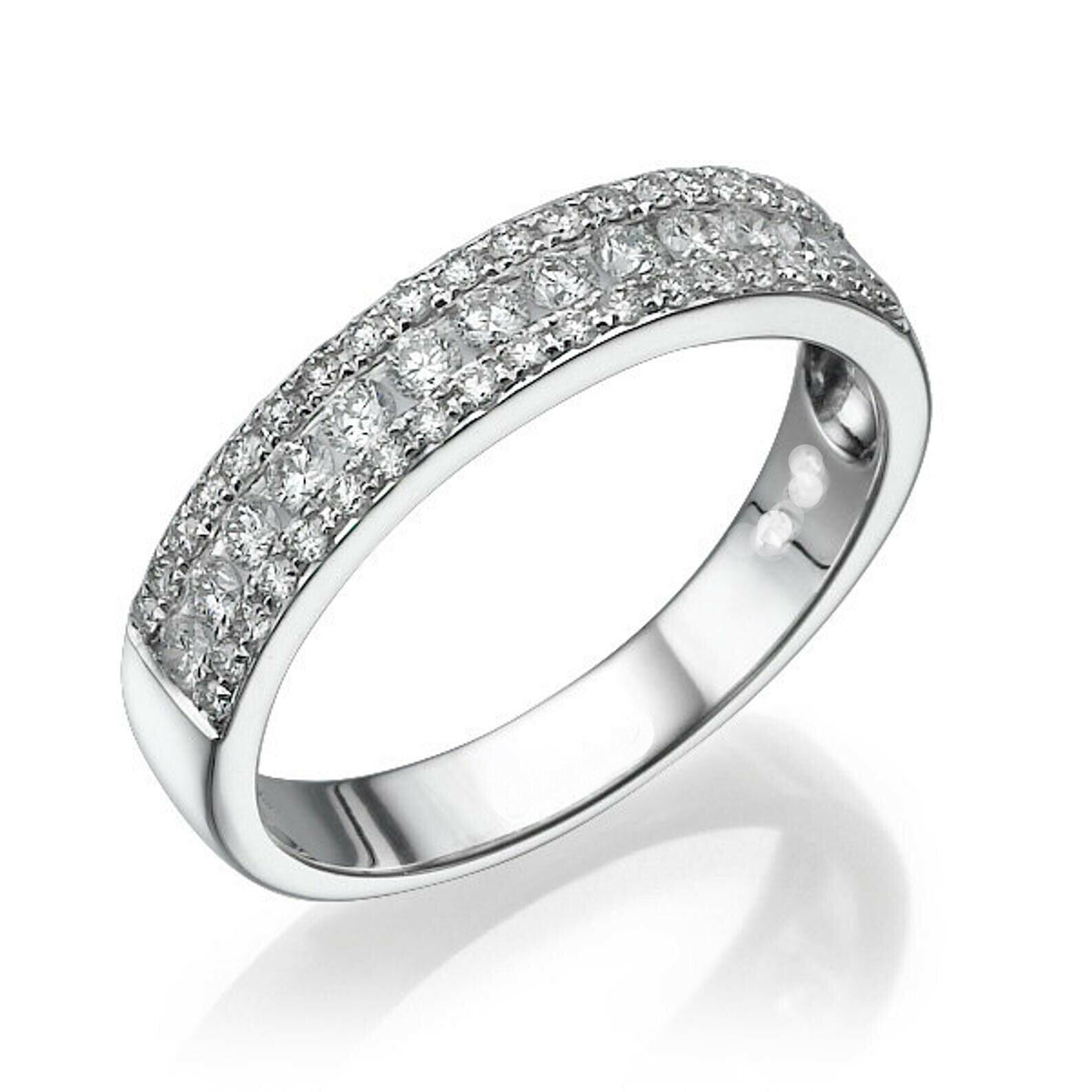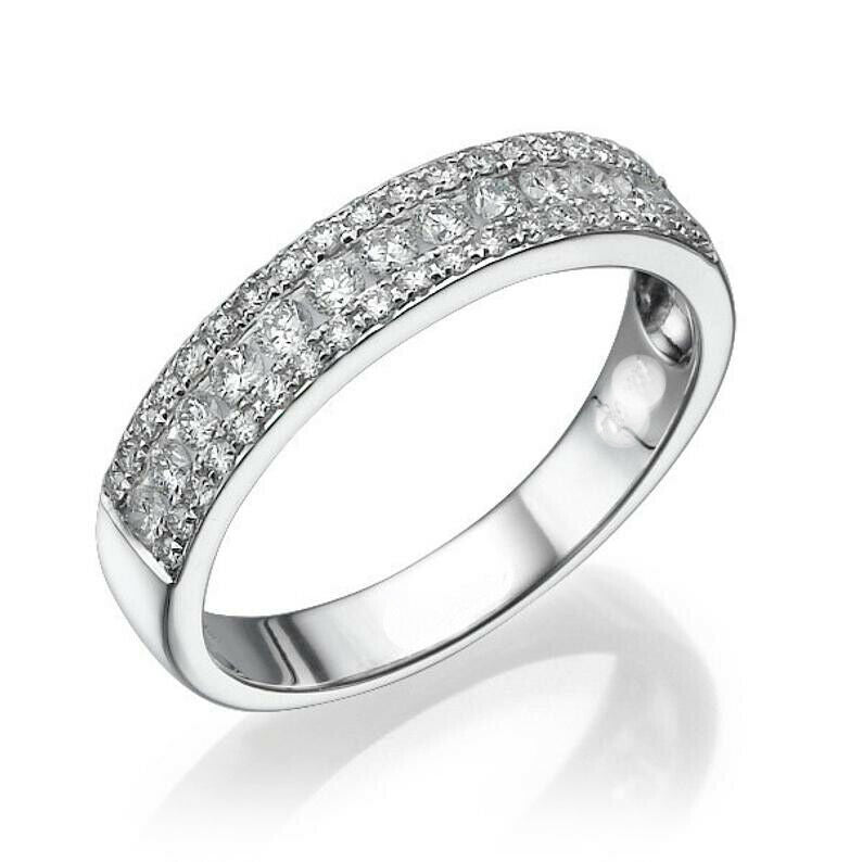2ct Round Cut Diamond Wedding Band Three Row Half Eternity 14k White Gold Finish