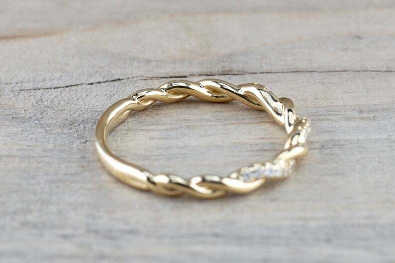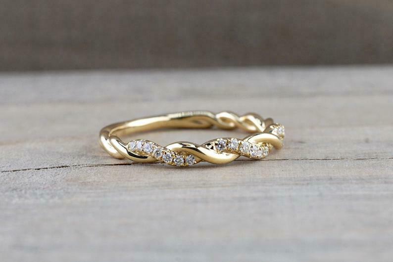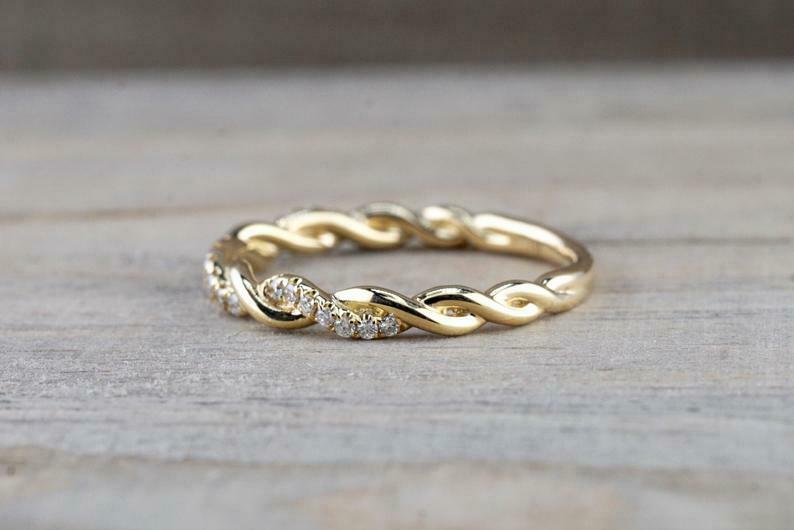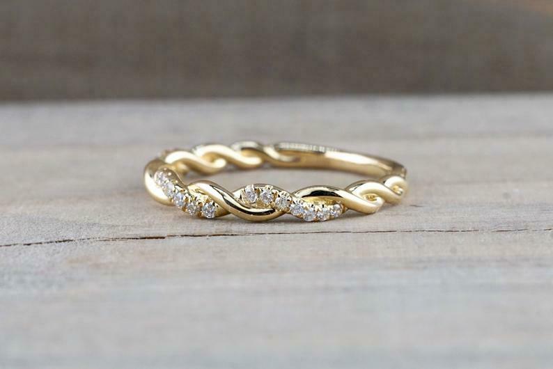 2ct Round Cut Diamond Wedding Band Twisted Rope Infinity 14k Yellow Gold Finish