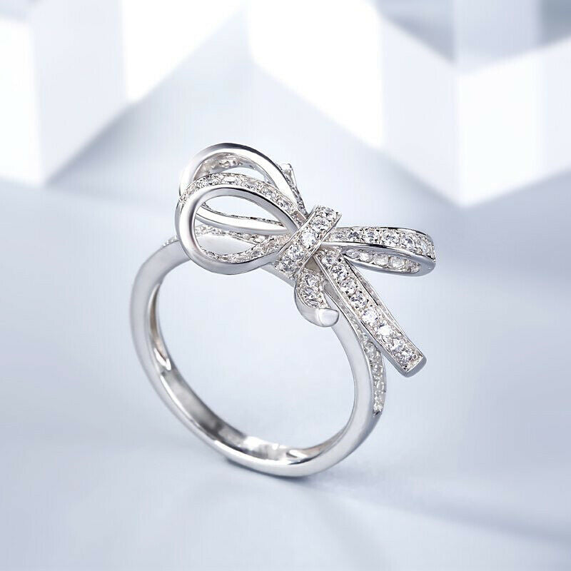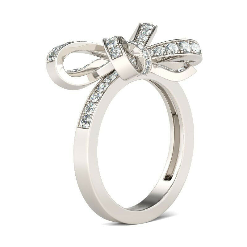 2Ct Round Cut DVVS1 Diamond Dual Knot Design Engagement Ring 14K White Gold Over