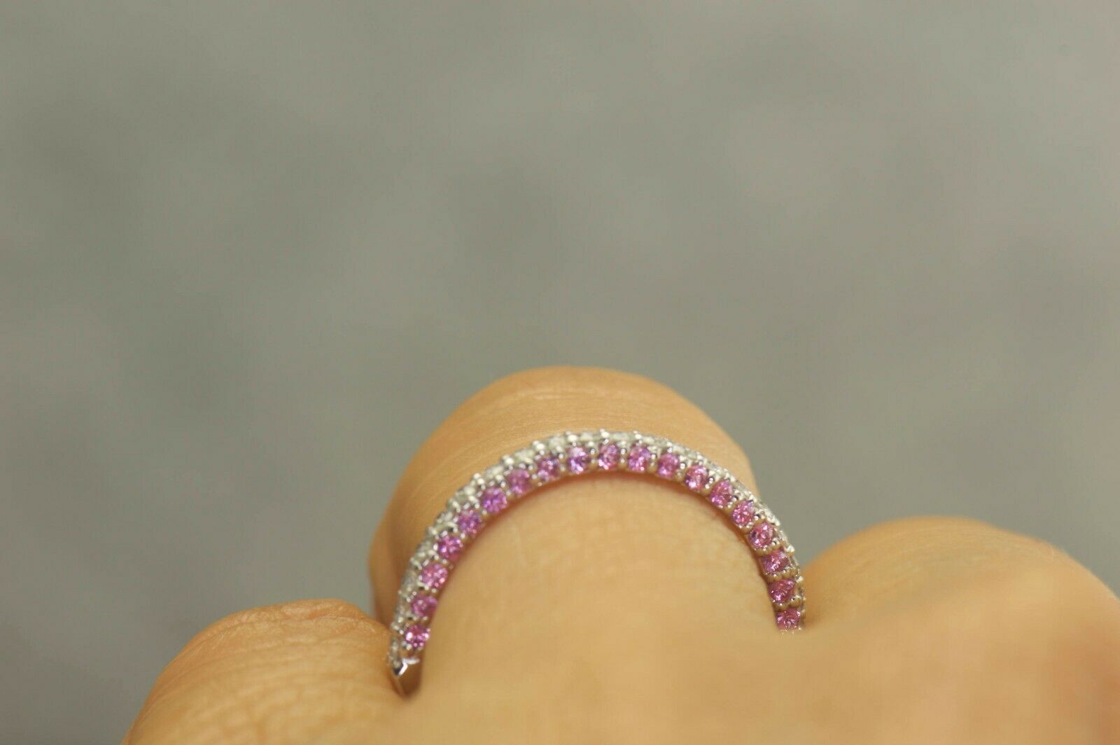 2Ct Round Cut Purple Amethyst Three Row Diamond Wedding Band 14K White Gold Over