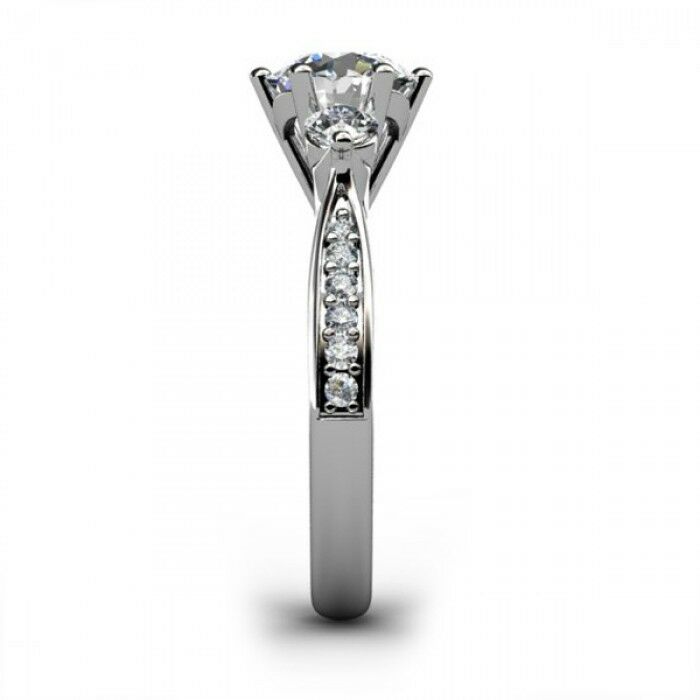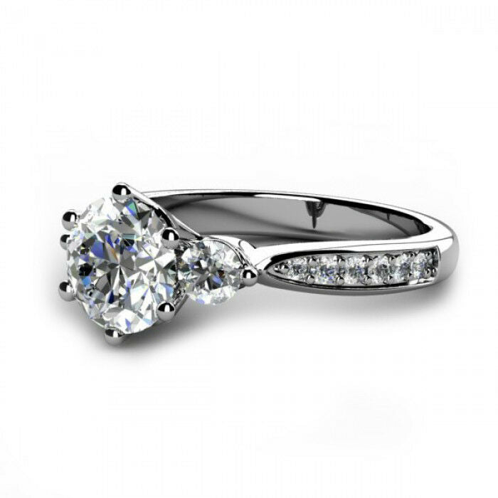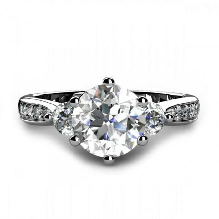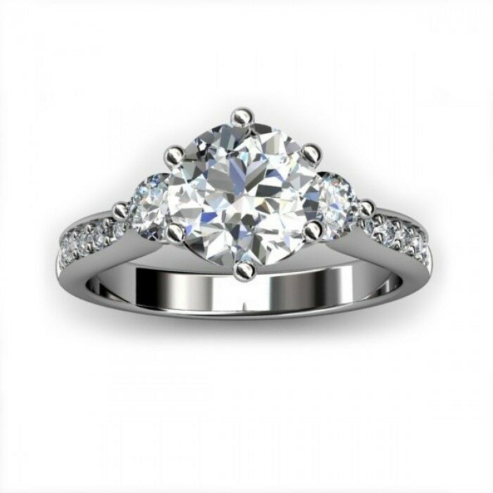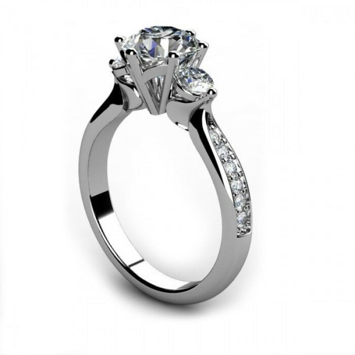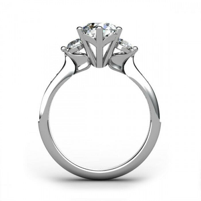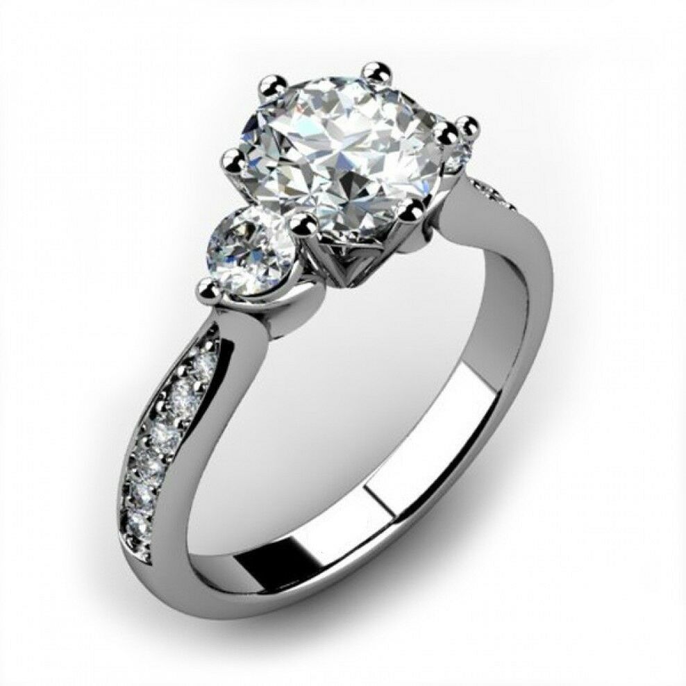 2ct Round Cut VVS1 Diamond Accent 3 Stone Engagement Ring 14k White Gold Finish