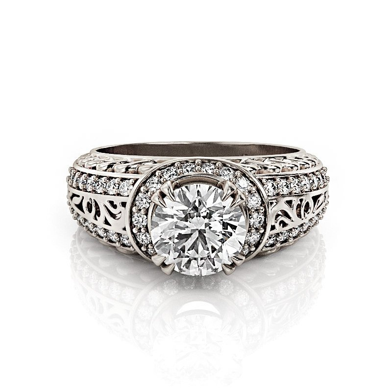 2ct Round Cut VVS1 Diamond Engagement Ring 14k White Gold Finish Antique Vintage