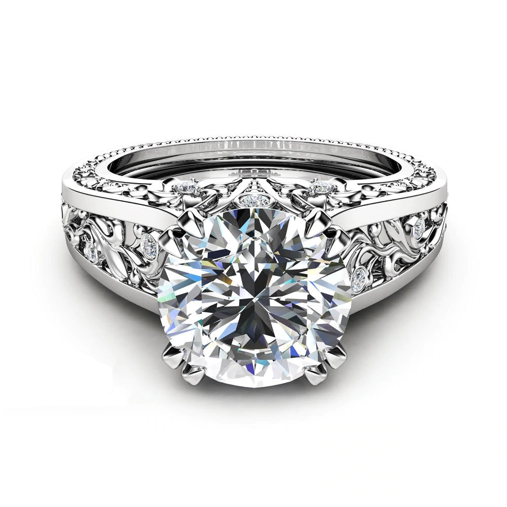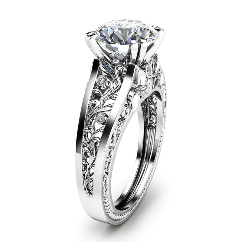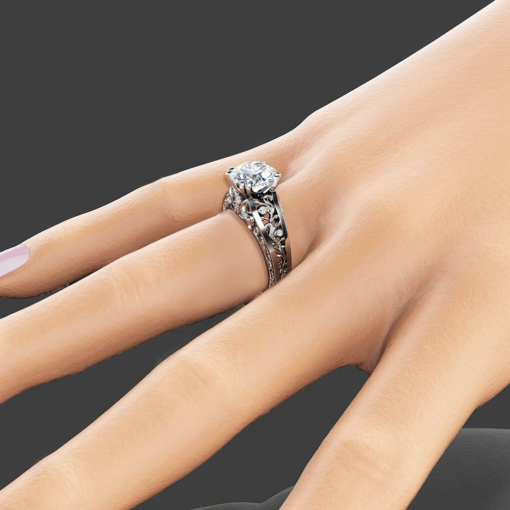 2ct Round Cut VVS1 Diamond Engagement Ring 14k White Gold Finish Filigree Hollow